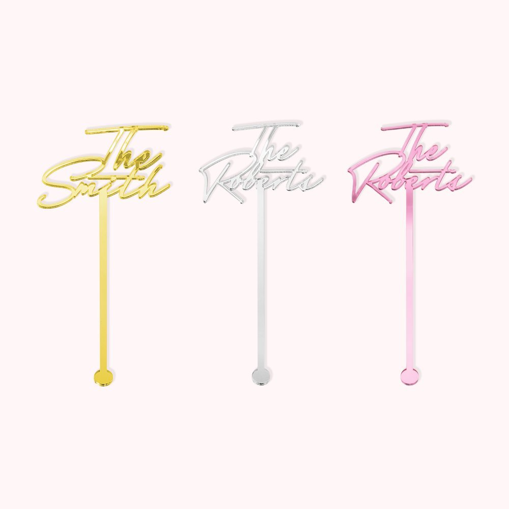 A delightful personalized stirrer, perfect for dinner parties, birthdays, and weddings! The perfect personalized accessory to any drink! These classic stirrers rod to fit home, office, bar, party, wedding, or family gathering. Note: Stir Sticks can only be used with cold or room temperature beverages, not heated. And the word "The" is a fixed display.