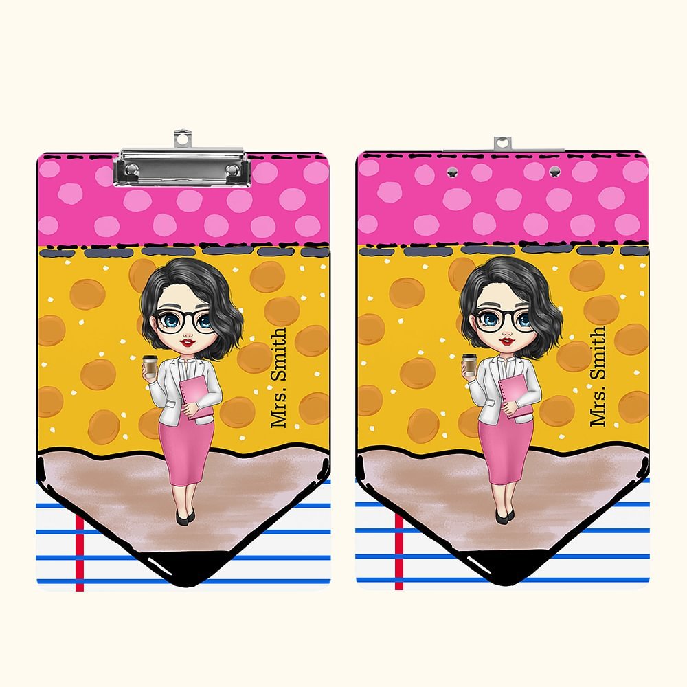This clipboard is designed specifically for teachers. It can be customized with male or female cartoon teacher images and colorful pencil patterns in a variety of colors, making it a unique and exclusive item.