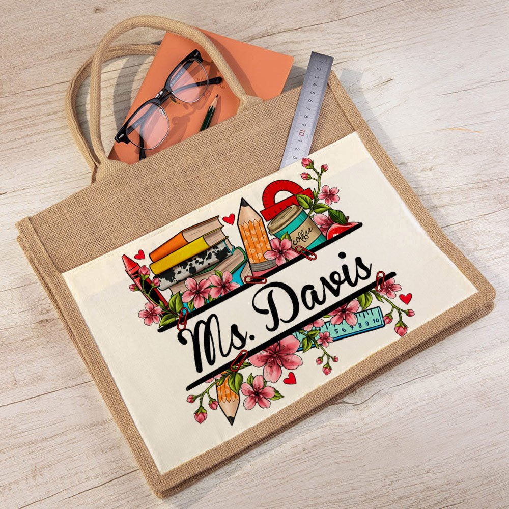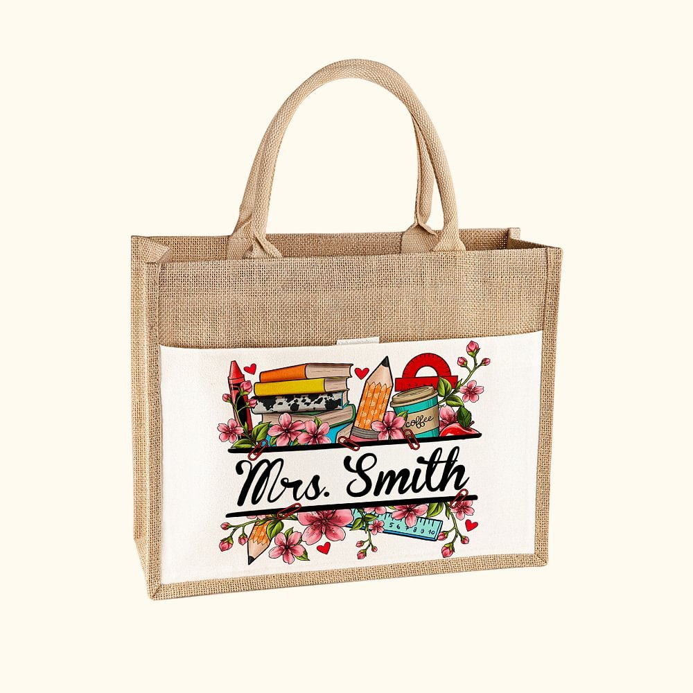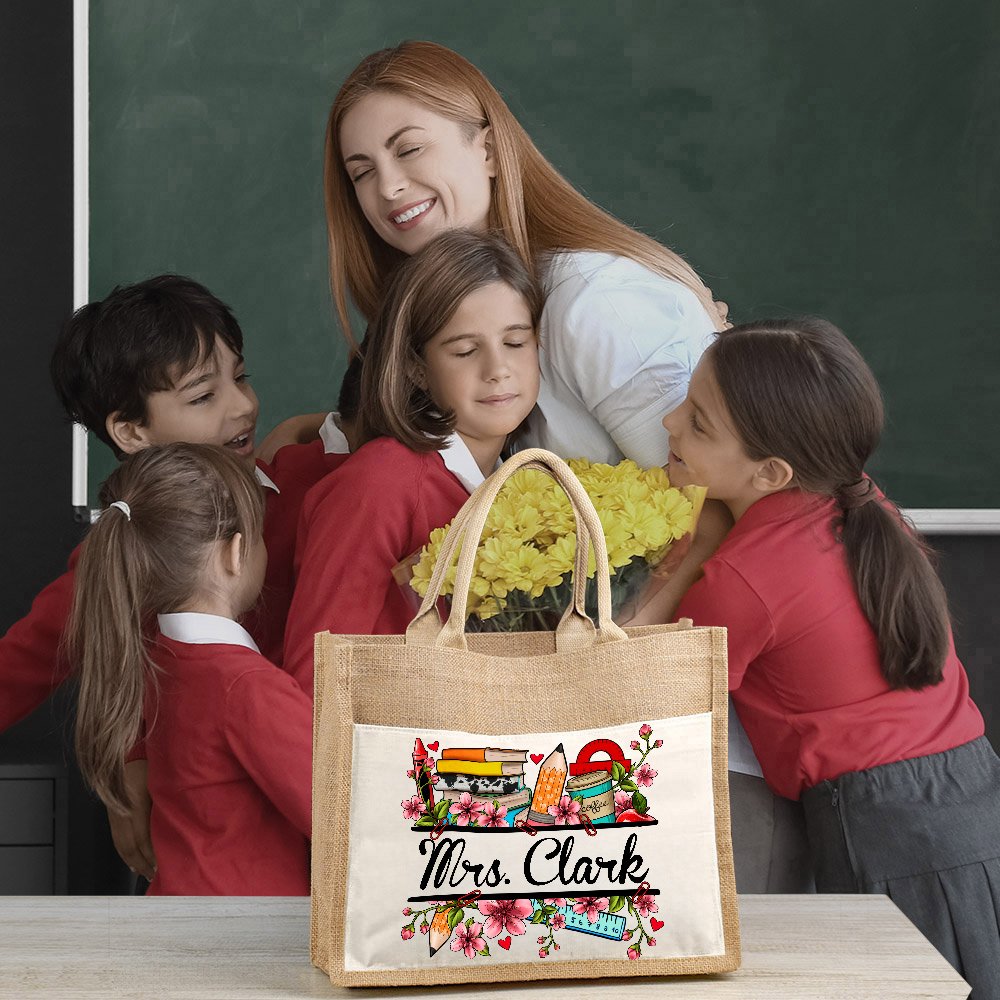 This bag combines elements of pencils, crayons, peach blossoms, books, etc. The colours are bright and strong, full of teacher characteristics, and can perfectly show the teacher's personality. To make the bag more thoughtful, you can customize the teacher's name and let each blooming flower decorate it.