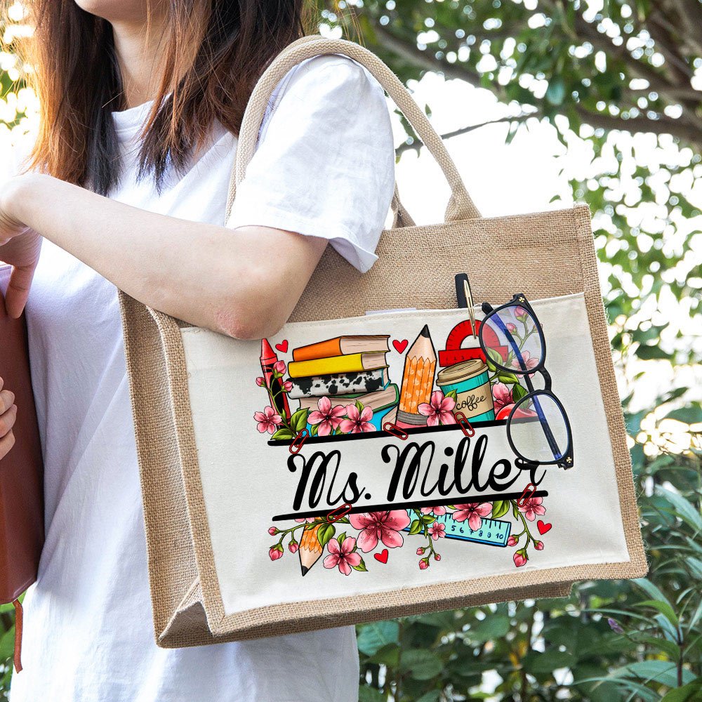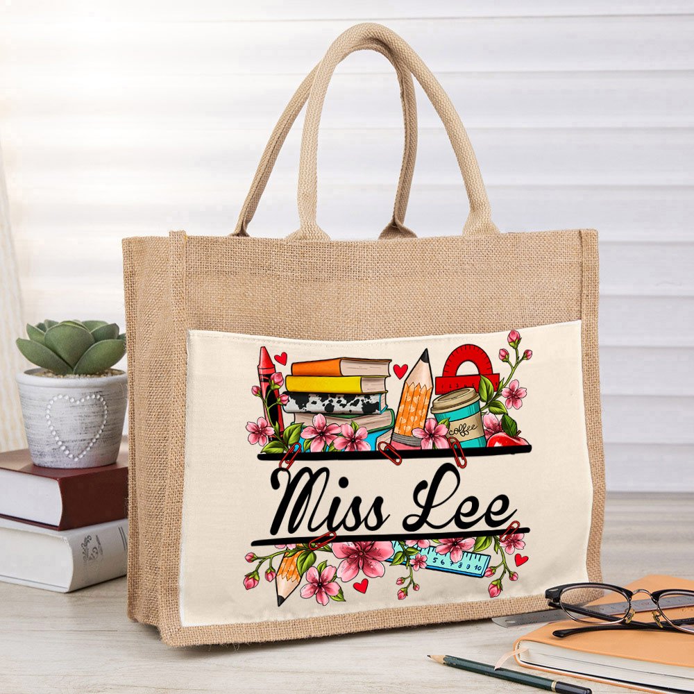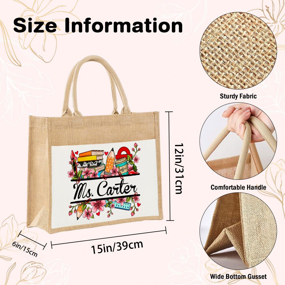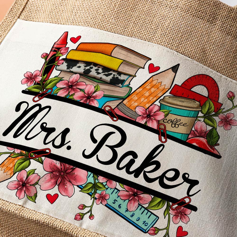 This bag combines elements of pencils, crayons, peach blossoms, books, etc. The colours are bright and strong, full of teacher characteristics, and can perfectly show the teacher's personality. To make the bag more thoughtful, you can customize the teacher's name and let each blooming flower decorate it.