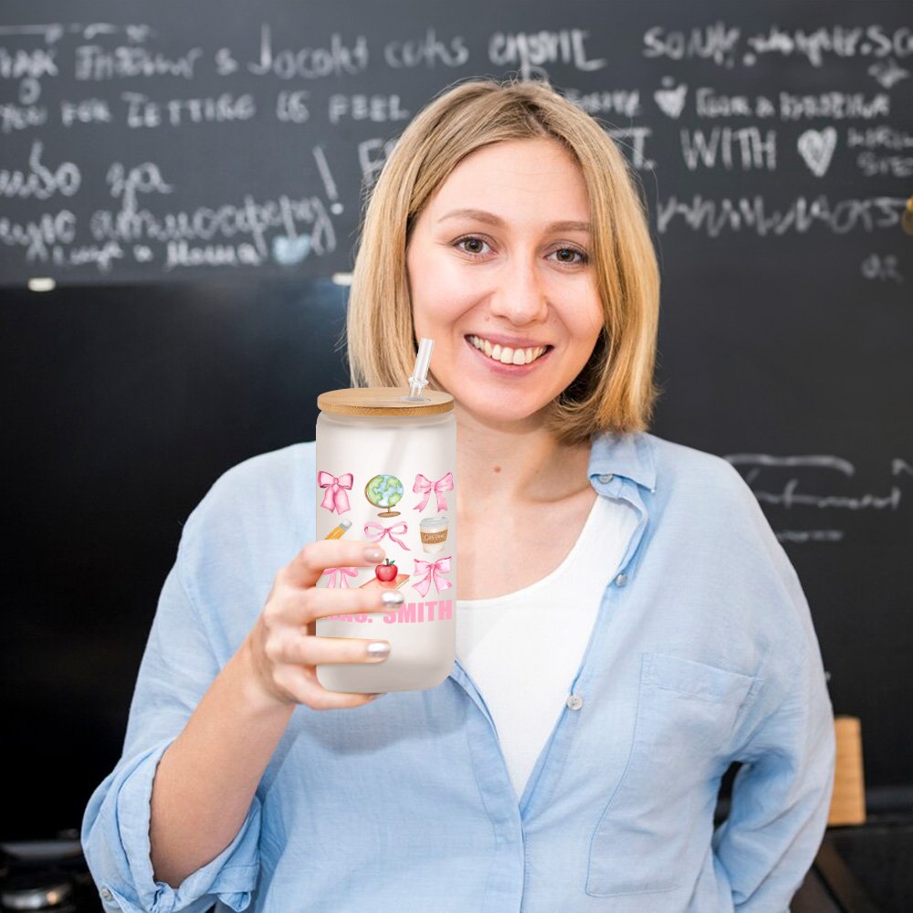 Adorned with a charming and cute pink bow tie, pencil, globe, etc., educational elements to show the characteristics of academic work. You can add your teacher's name to the glass bottle to show the deep emotional bond between you and your teacher and express your gratitude for their invaluable contributions.