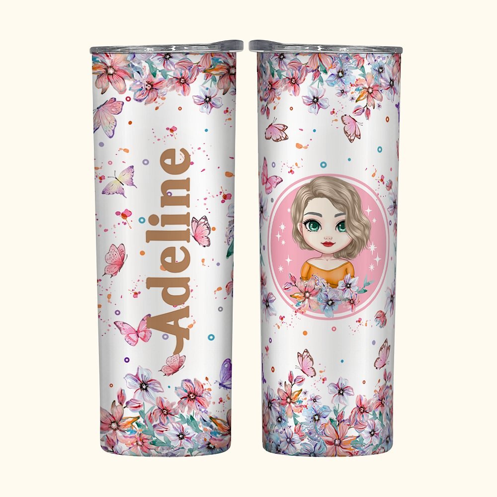 The flower butterfly tumbler is a delightful gift that combines grace and personalization. Adorned with a beautiful flower and butterfly design, it can be customized with a name, making it a truly unique and cherished gift for women.