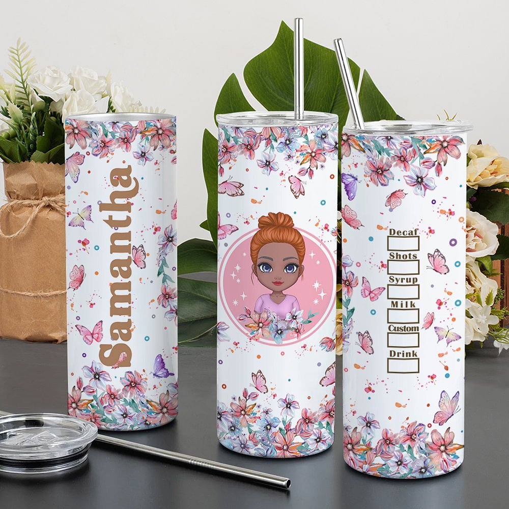 Whether it's a birthday celebration or a token of appreciation for bridesmaids, this Personalized tumbler is a thoughtful and memorable gift. The combination of the flower butterfly design, custom name, and practicality creates a gift that will be cherished and used daily.