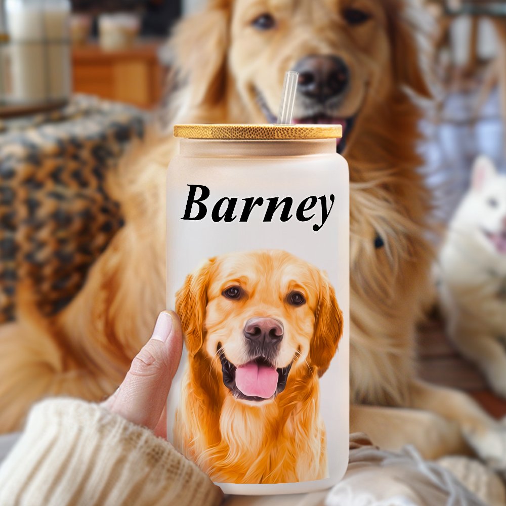 Celebrate your beloved pet with this pet image glass cup. Each cup can be customized with your pet's name and photo, making it a truly special and one-of-a-kind gift. It's a heartwarming accessory for pet owners, capturing cherished memories stylishly and practically.