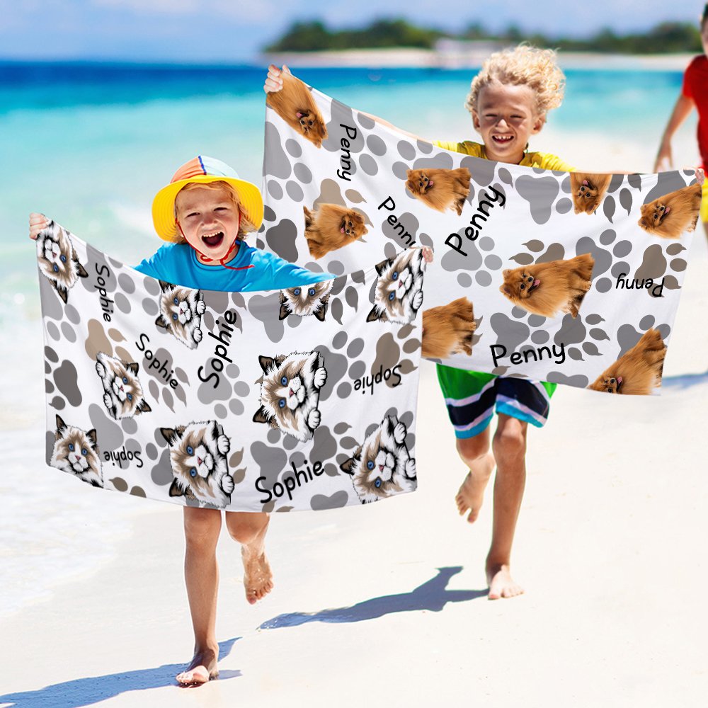 Customize this beach towel with the pet breed pattern or even your pet photo and name, making it a unique and adorable addition to your beach or poolside gear. The personal touch of your furry friend's image brings a special charm and sentiment to your towel.