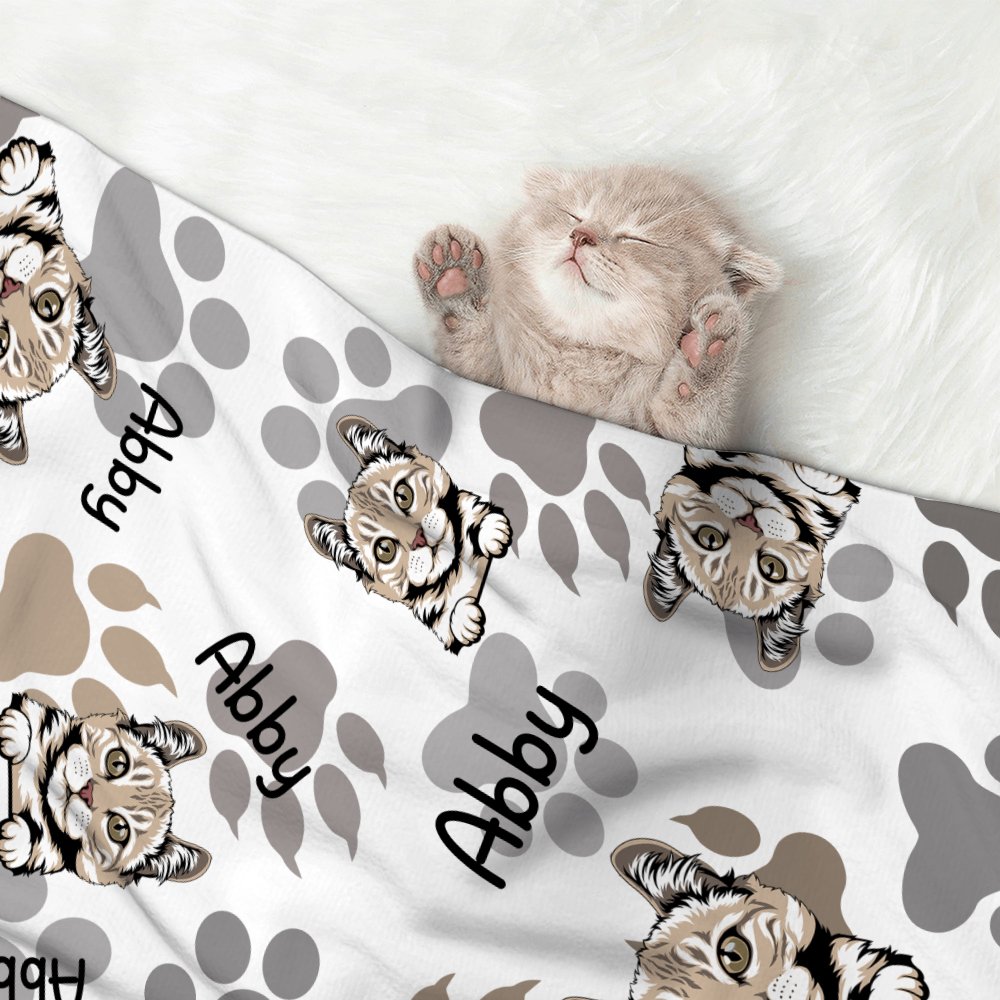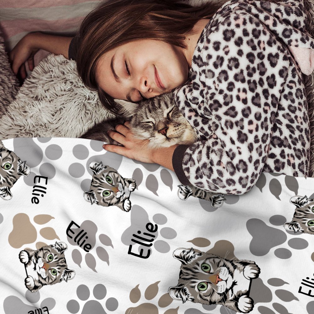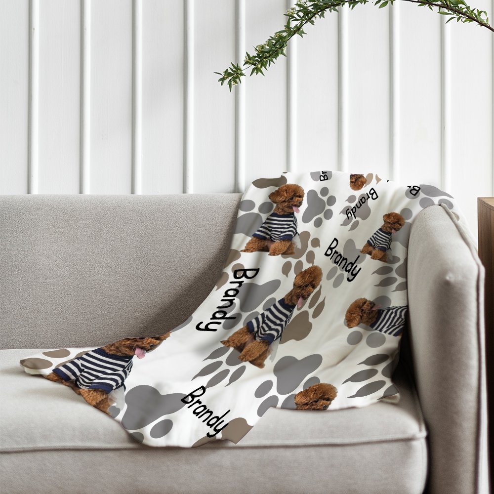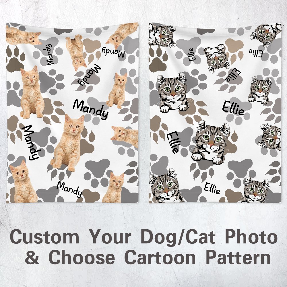 This adorable pet blanket is printed with cat and dog patterns, and you can upload pictures of your pets. You can also choose our patterns. We also added pet paw prints to the blanket to make it unique. You can print your pet's name on the blanket.