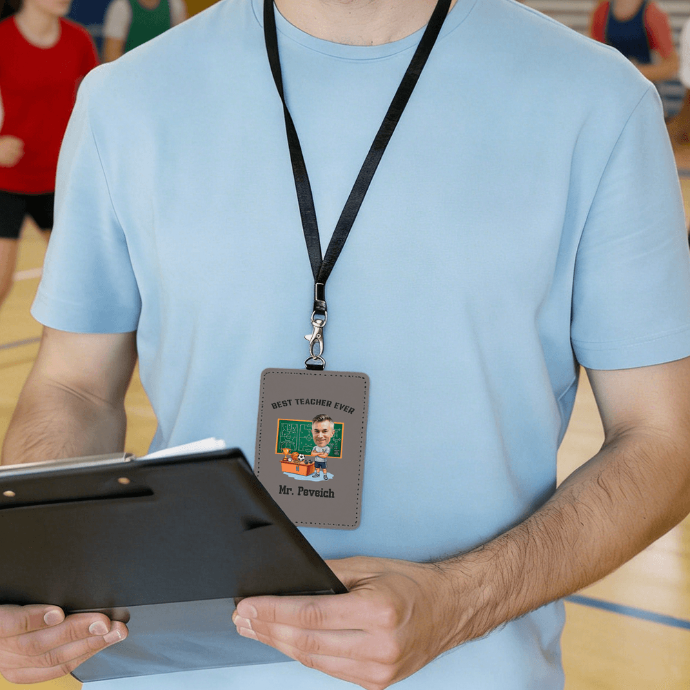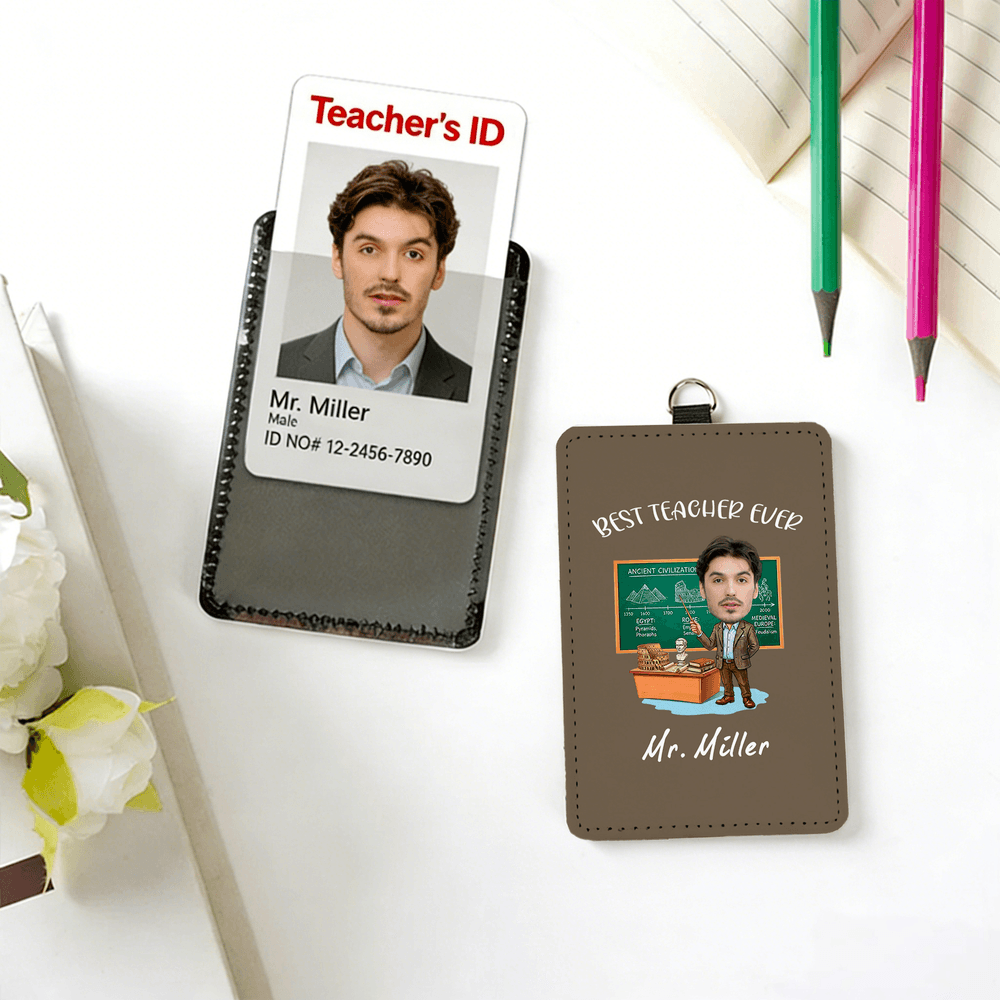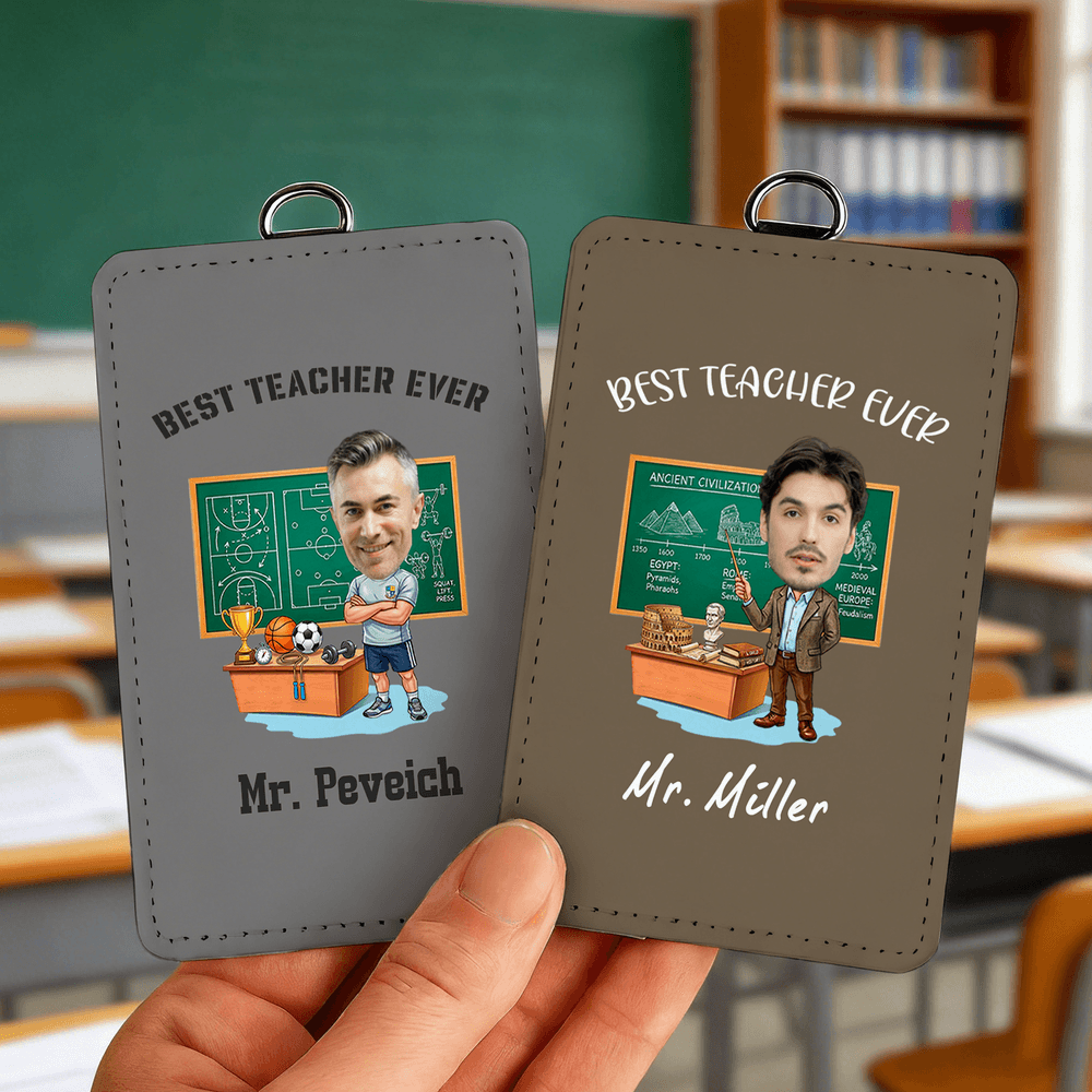 An exclusive custom card holder designed specifically for male teachers. Simply upload the teacher's photo and match it with subject-specific images, paired with a fun slogan and a custom text. The cartoon and comic style is full of creativity, saying goodbye to generic, off-the-shelf card holders.
