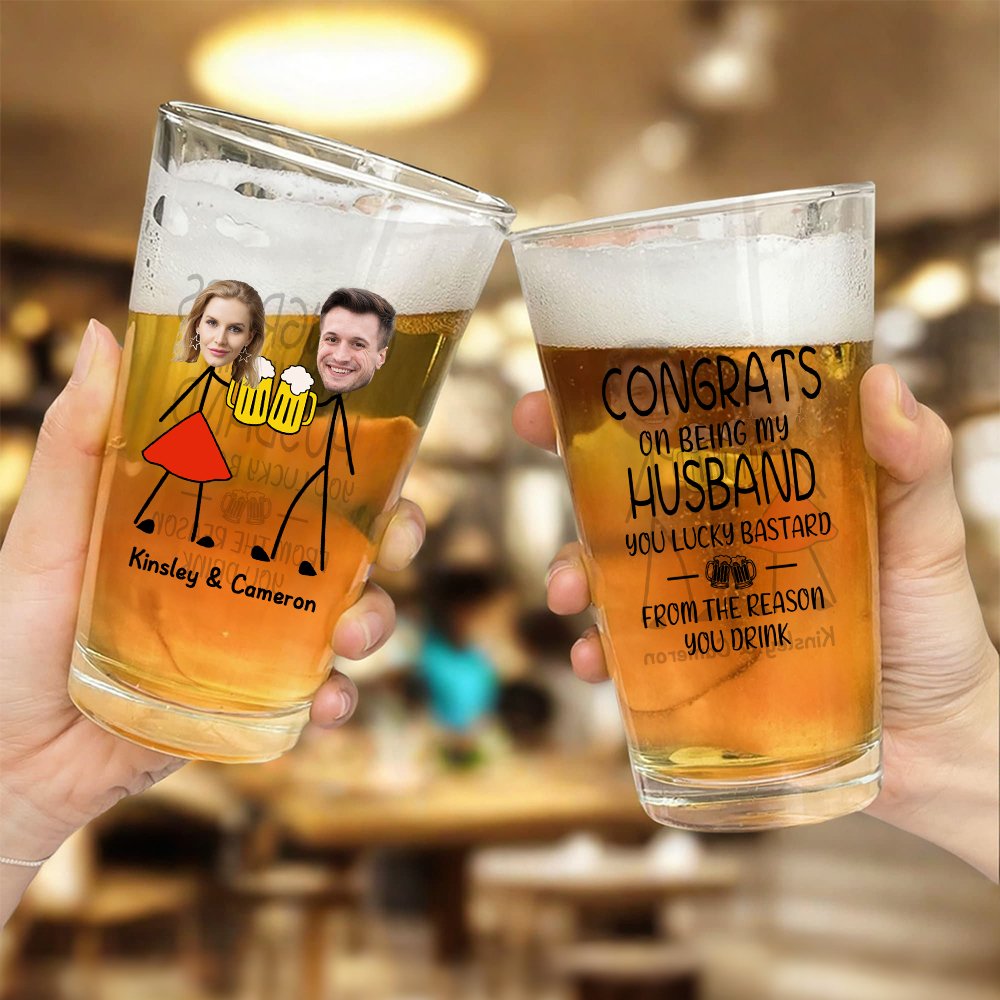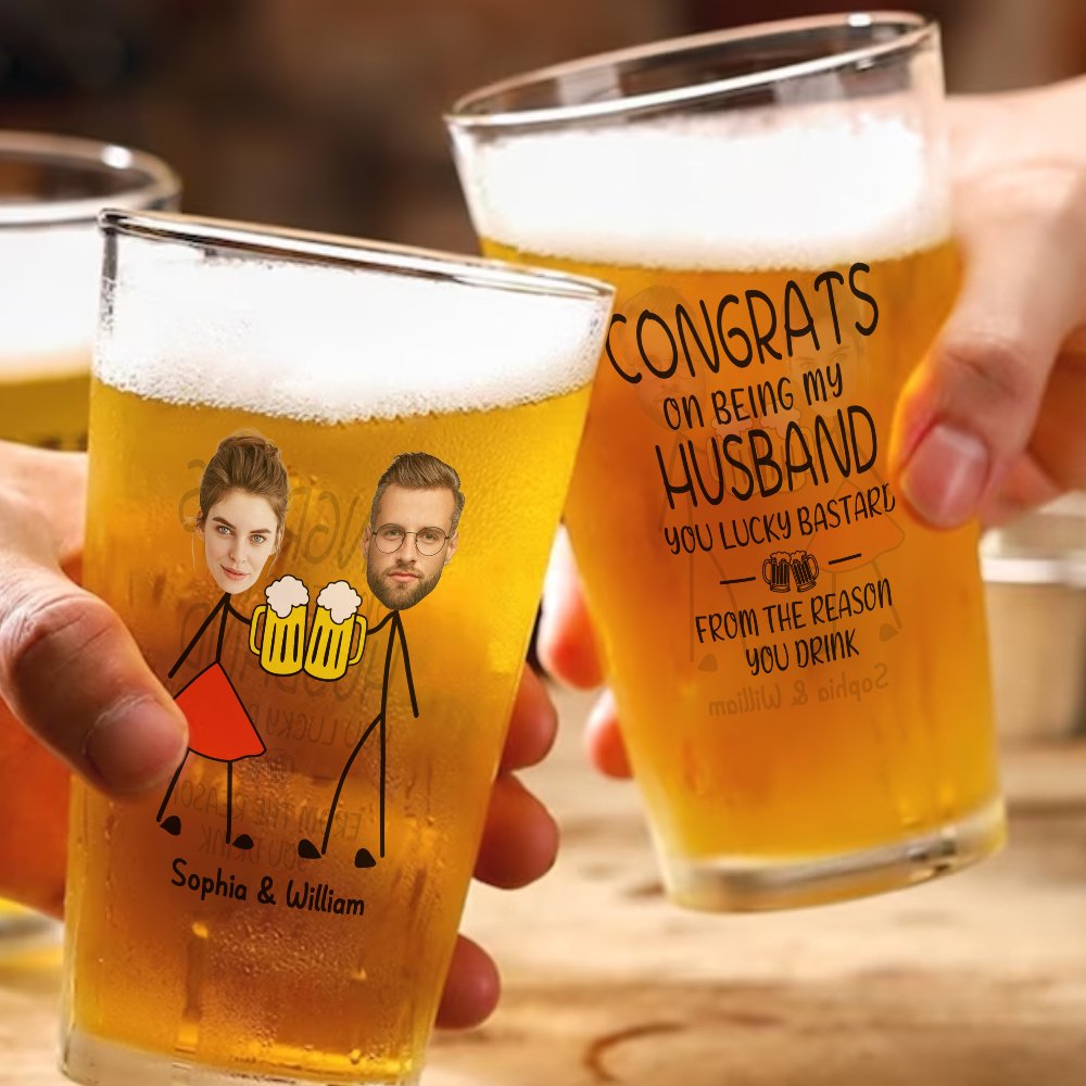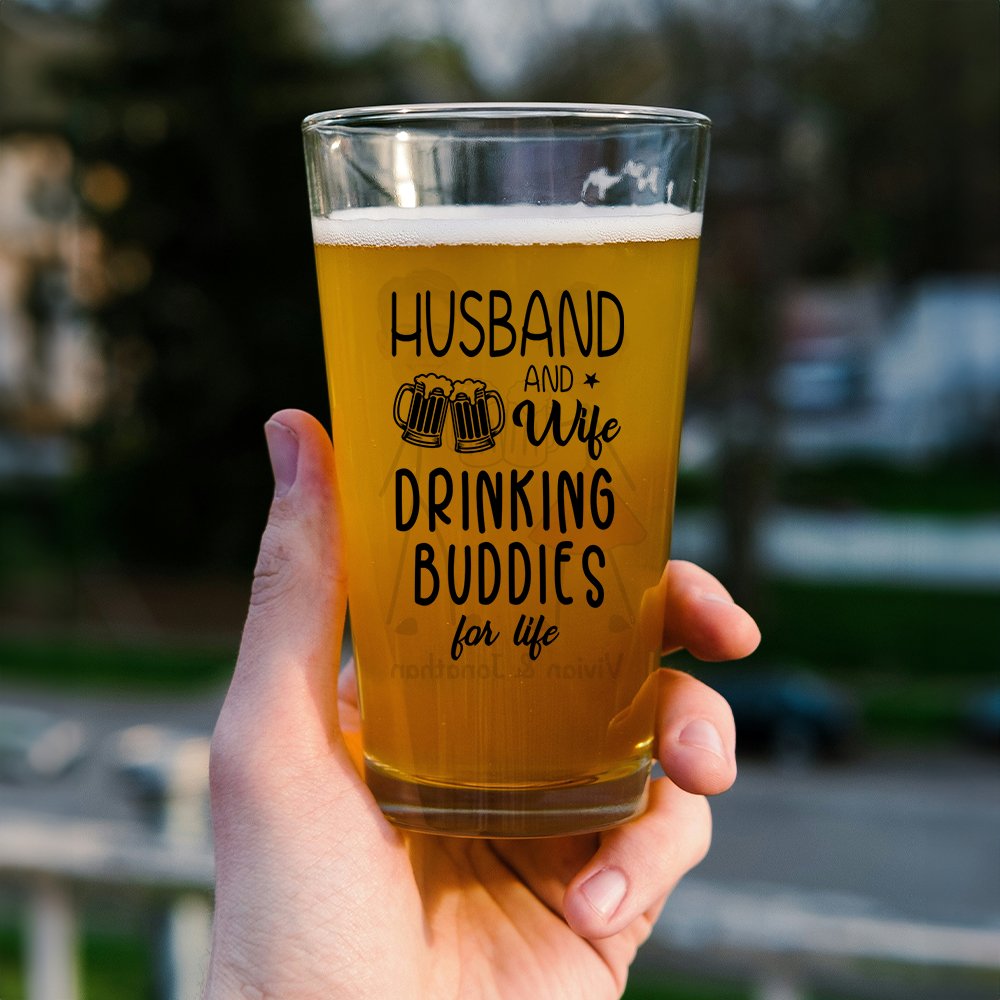 This glass is not just a regular drinking glass; it symbolizes joy and laughter shared between couples. Its humorous optional text, such as “Husband and Wife Drinking Buddies for life” and “Congrats On Being My Husband You Lucky Bastard From The Reason You Drink,” adds an atmosphere of fun and lightheartedness to any occasion.