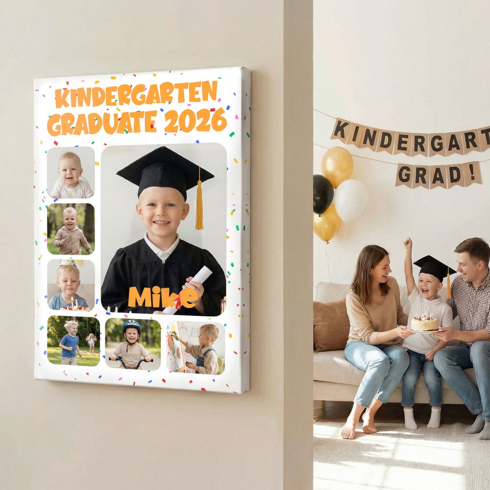 Personalized Photos Canvas Art Poster Frameless Framed Painting with Name Title Kindergarten Preschool Graduation Party Gift for Graduates Kids