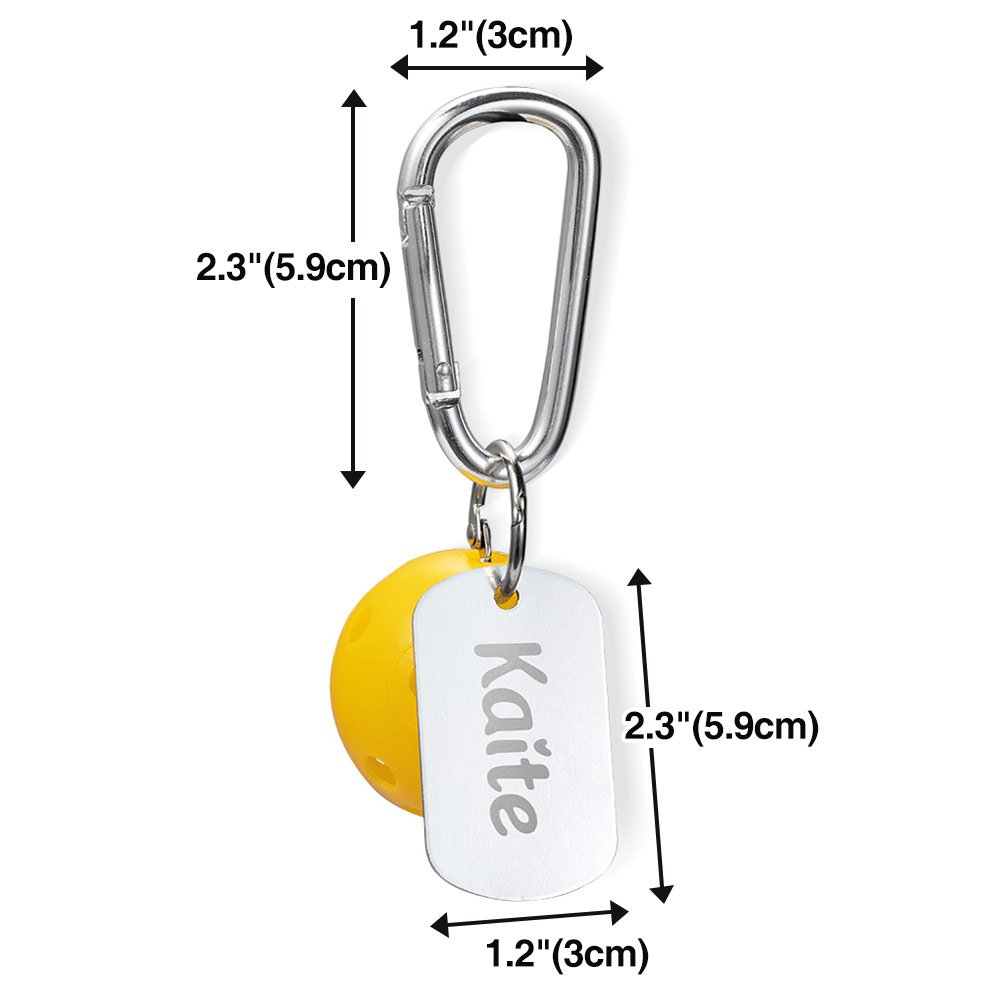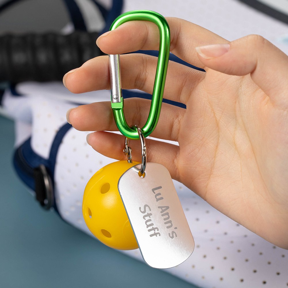 Pickleball - 1.7"(4.2cm) Diameter with 26 Holes; Carabiner Clip - No.6 D Shape; Metal Tag - 2"(5cm)Length × 1.2"(3cm)Width × 0.04"(0.1cm)Thickness