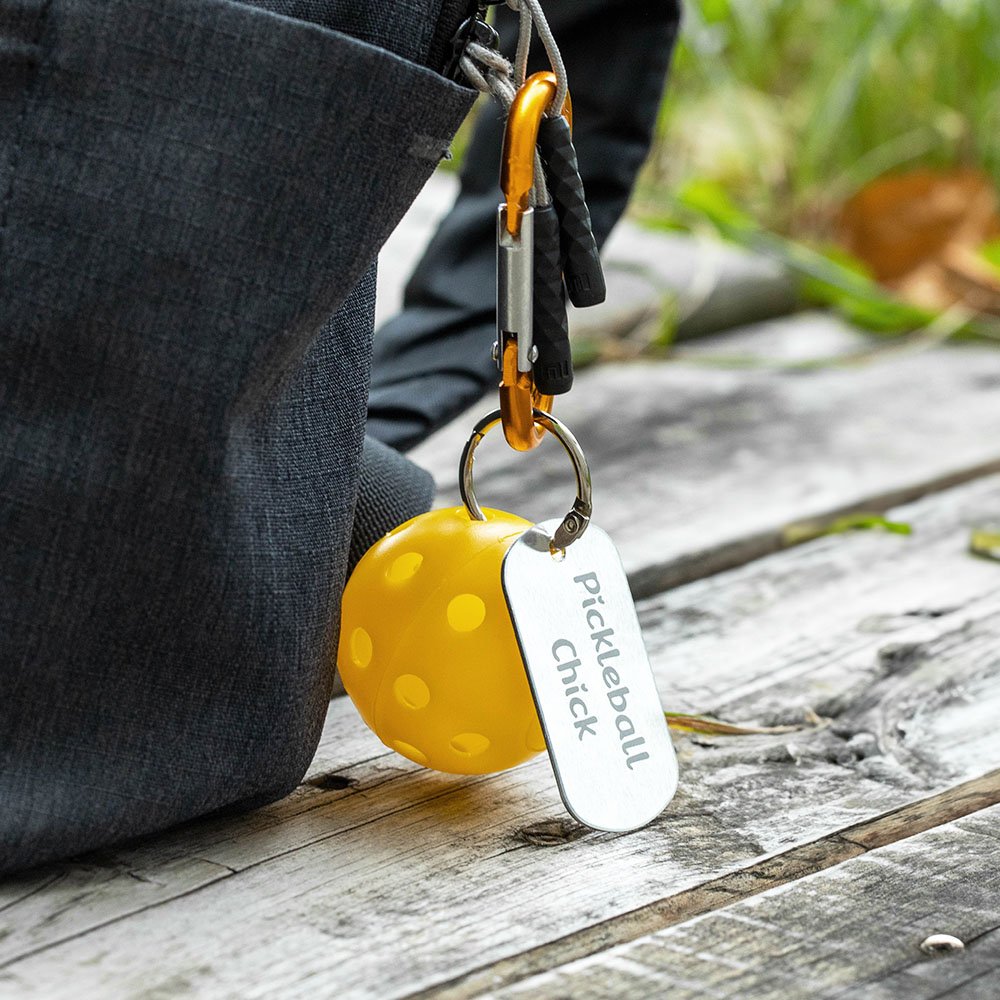 The keychain features a sturdy and reliable clip attachment, allowing you to securely fasten it to your belongings. Whether you're heading to the pickleball court, gym, or running errands, this keychain ensures that your keys or small items are within reach.
