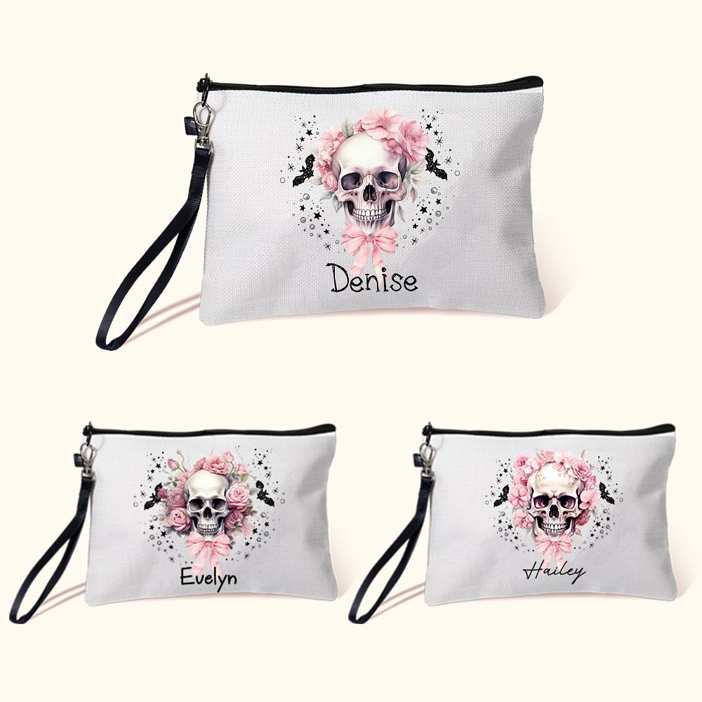 Embrace the spirit of the season with this skull-themed makeup bag. It's the perfect accessory for costume parties, trick-or-treating, or themed gatherings. Let your loved ones showcase their festive style with this functional and fashionable item.