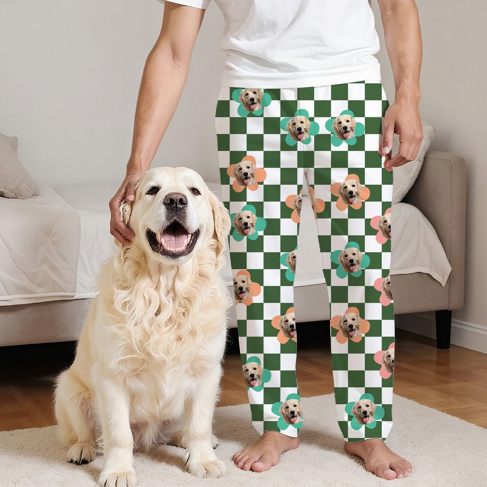 Centreed around customizable pet portraits, the overall style blends adorable charm with heartfelt warmth. Printing your furry friend's face on pajama bottoms breaks the monotony of traditional loungewear, transforming everyday home wear into cherished moments with your companion. These pajamas transcend ordinary clothing, becoming a special vessel for your affection toward your furry family member.