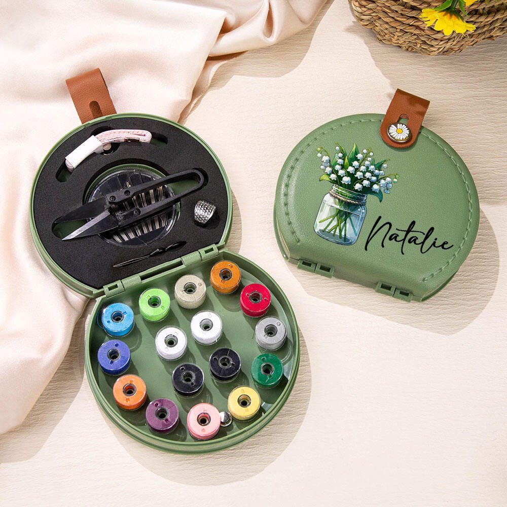 Featuring a beautiful birth flower bouquet in a mason jar design with a customized name, this sewing box is as stylish as it is functional, making it a unique and special addition to your crafting supplies.