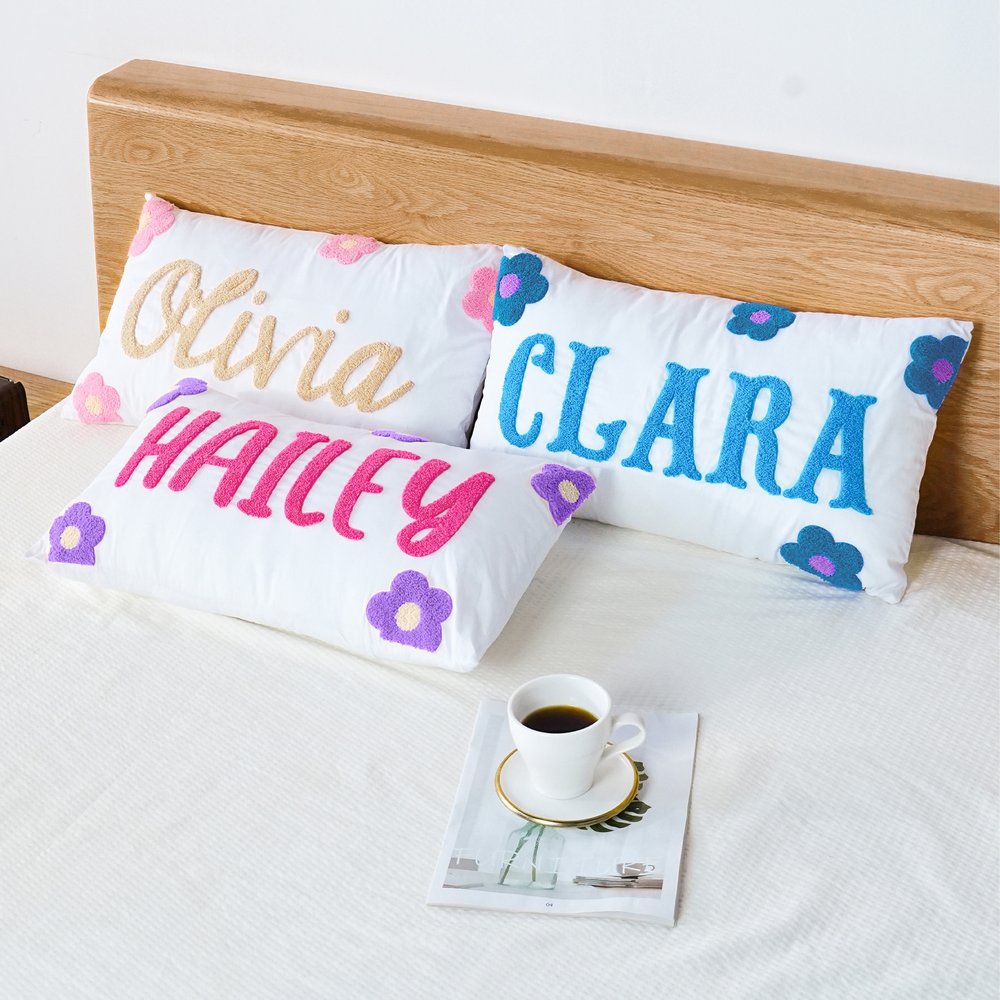 Crafted from high-quality cotton (pillow cover) and polyester (pillow insert), the set is soft, durable, and comfortable. The cotton pillowcase features unique towel embroidery, ensuring the name and floral design are plush, vibrant, and long-lasting. The material is gentle on skin, making it perfect for nurseries and cozy spaces. The pillow insert is fluffy and supportive, providing both style and comfort.