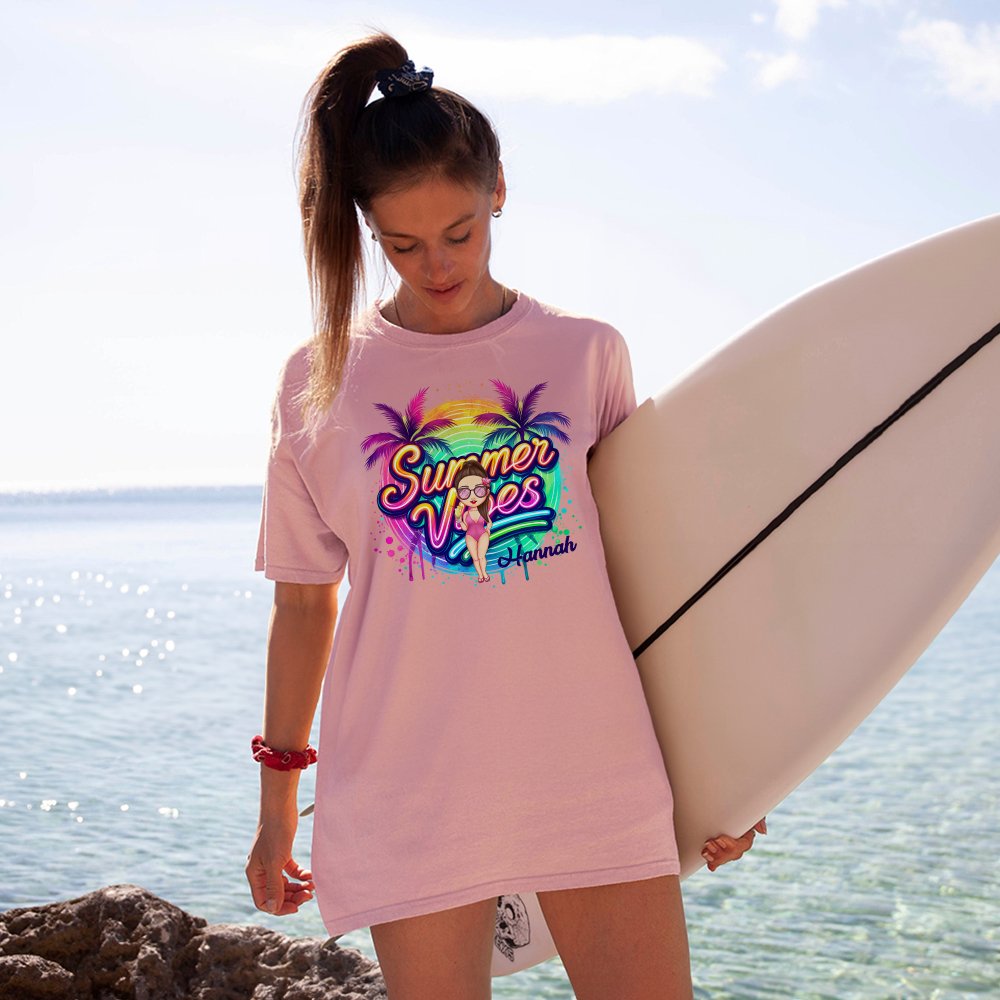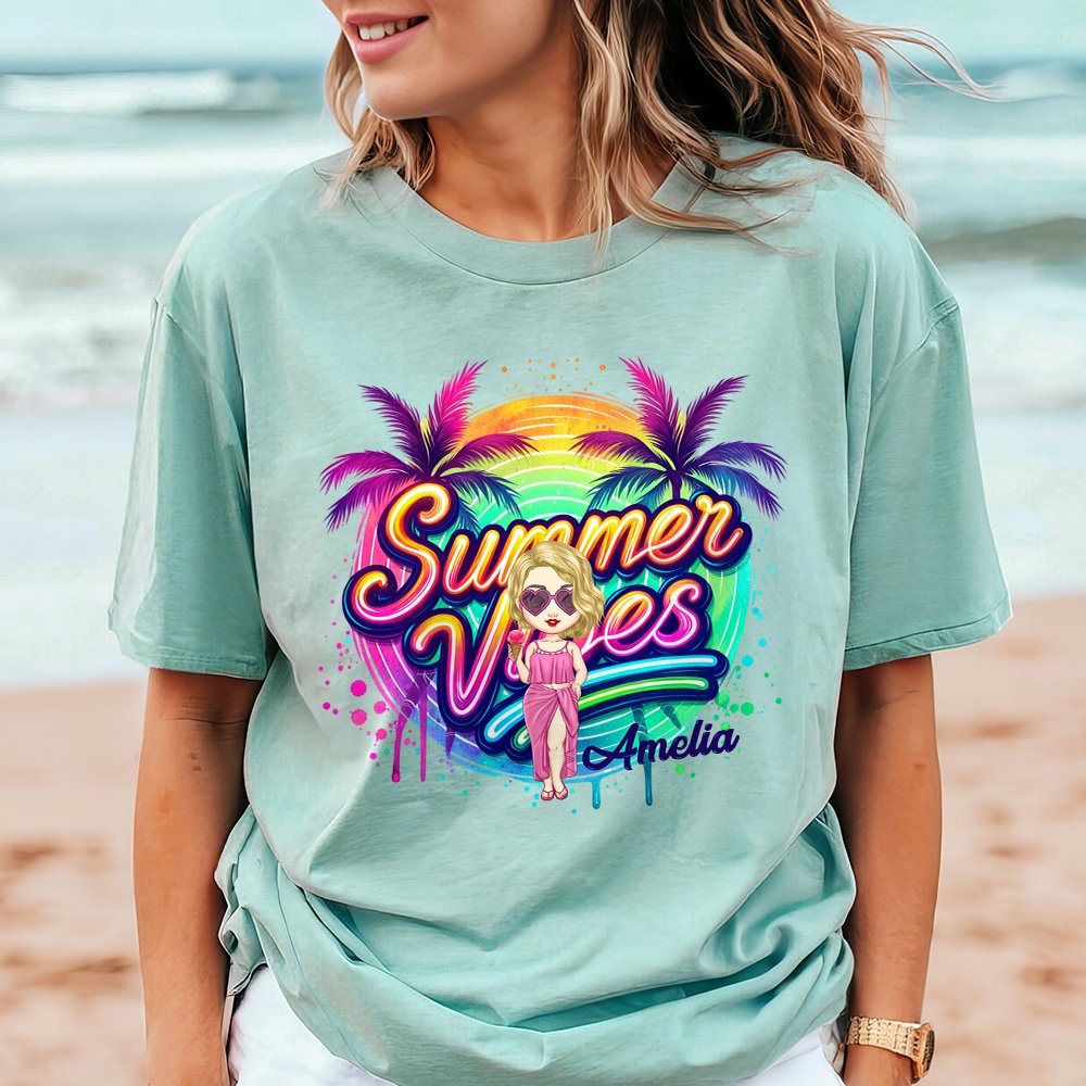 Ideal for birthdays, holidays, or beach-themed parties, this Personalized T-shirt is a joyful gift that reflects her vibrant personality and love for summer. It's a perfect way to celebrate her and make her feel special while embracing the joyful and carefree vibes of the season.