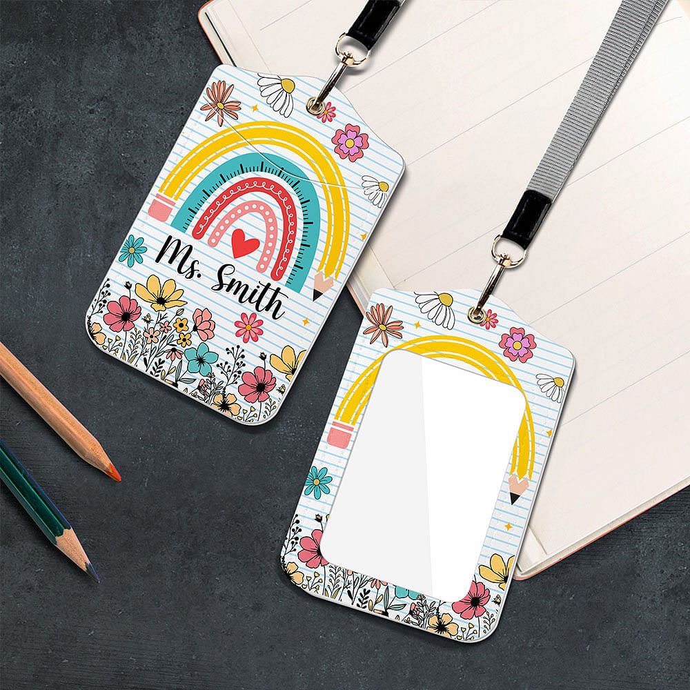 Our teacher ID holders come in three unique designs, pencil case, flower, and crayon-shaped designs. Customizing with the teacher's name adds a personal touch, making this a truly unique gift for teachers. It allows them to proudly display their name, ensuring everyone knows who they are while adding personality to their professional attire.