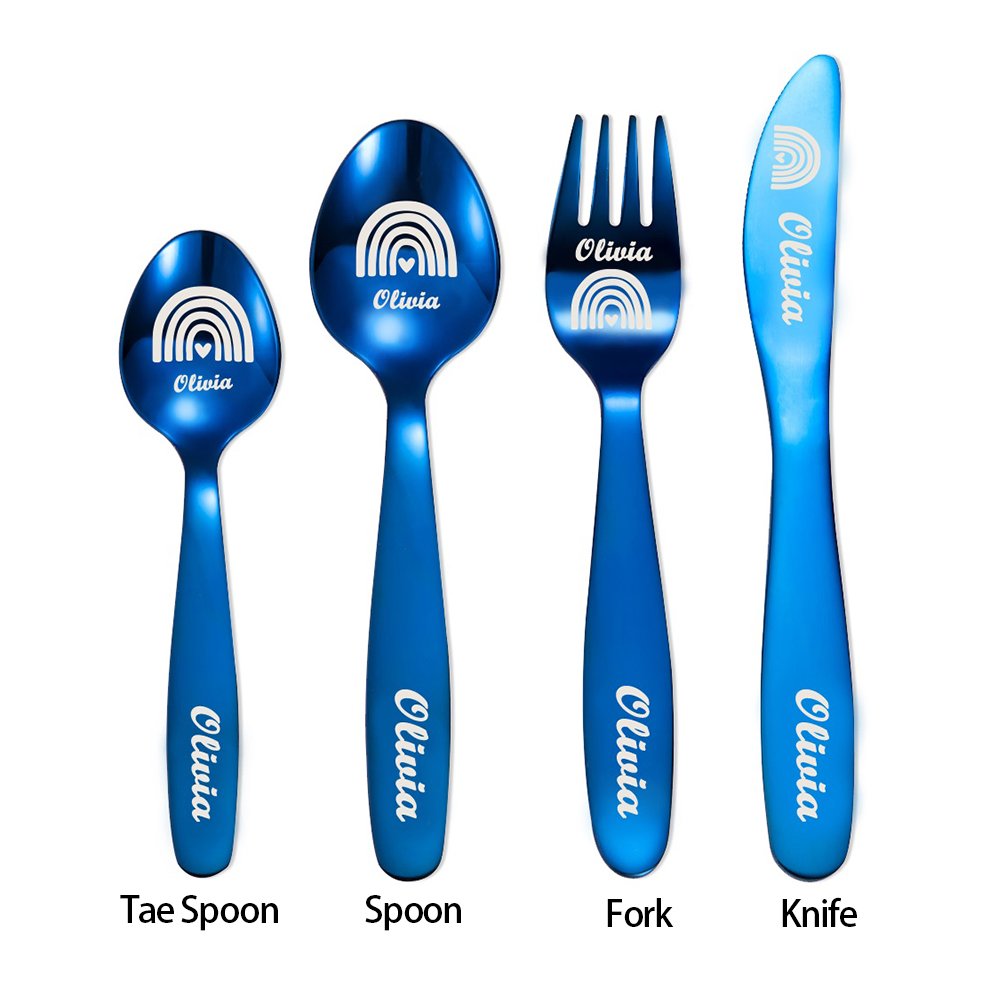 The rainbow tableware is the best gift for kids. Children's favorite rainbow is engraved on the spoon to make eating more fun. The pattern is laser engraved and can be preserved forever. The spoon is healthy and hygienic, and it is easy for children to hold. It is specially designed for children who love rainbows.