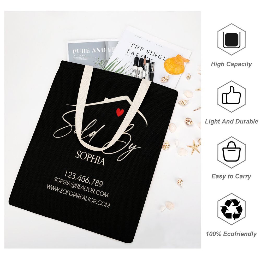 Customizing the tote bag with your name, phone number, email address, and website creates a powerful branding tool. It helps potential clients easily contact you and promotes your services wherever you go, making it a valuable asset for networking and marketing your real estate business.