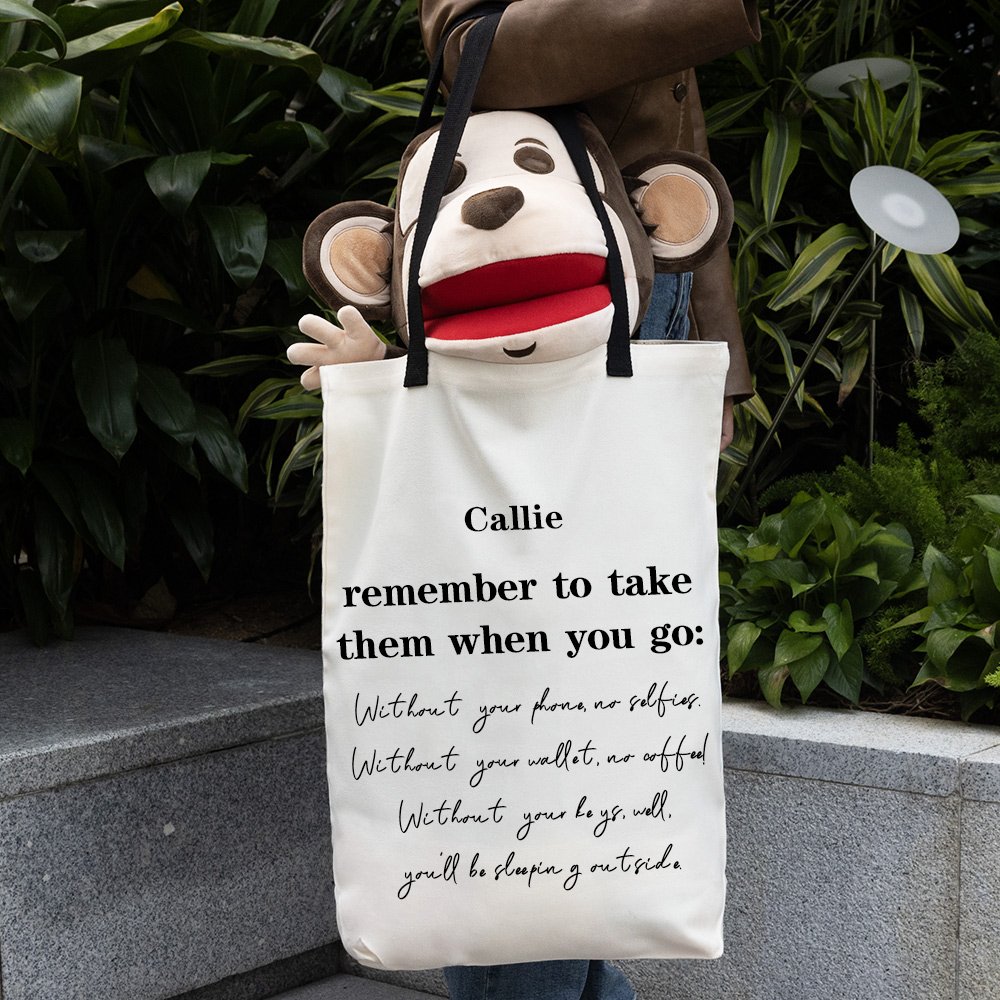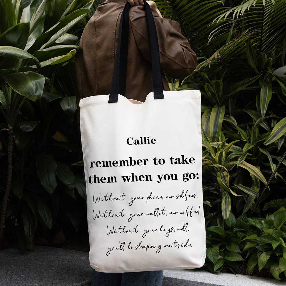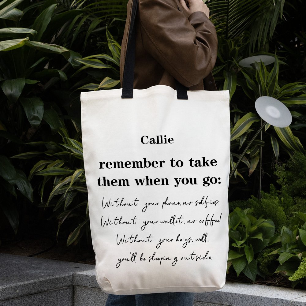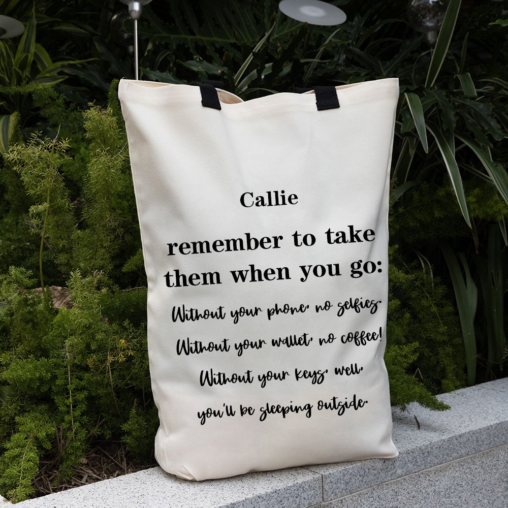 Personalized Remember To Take Them When You Go Reusable Large Canvas Shopping Grocery Tote Bag with Handles and Name Birthday Gift for Women