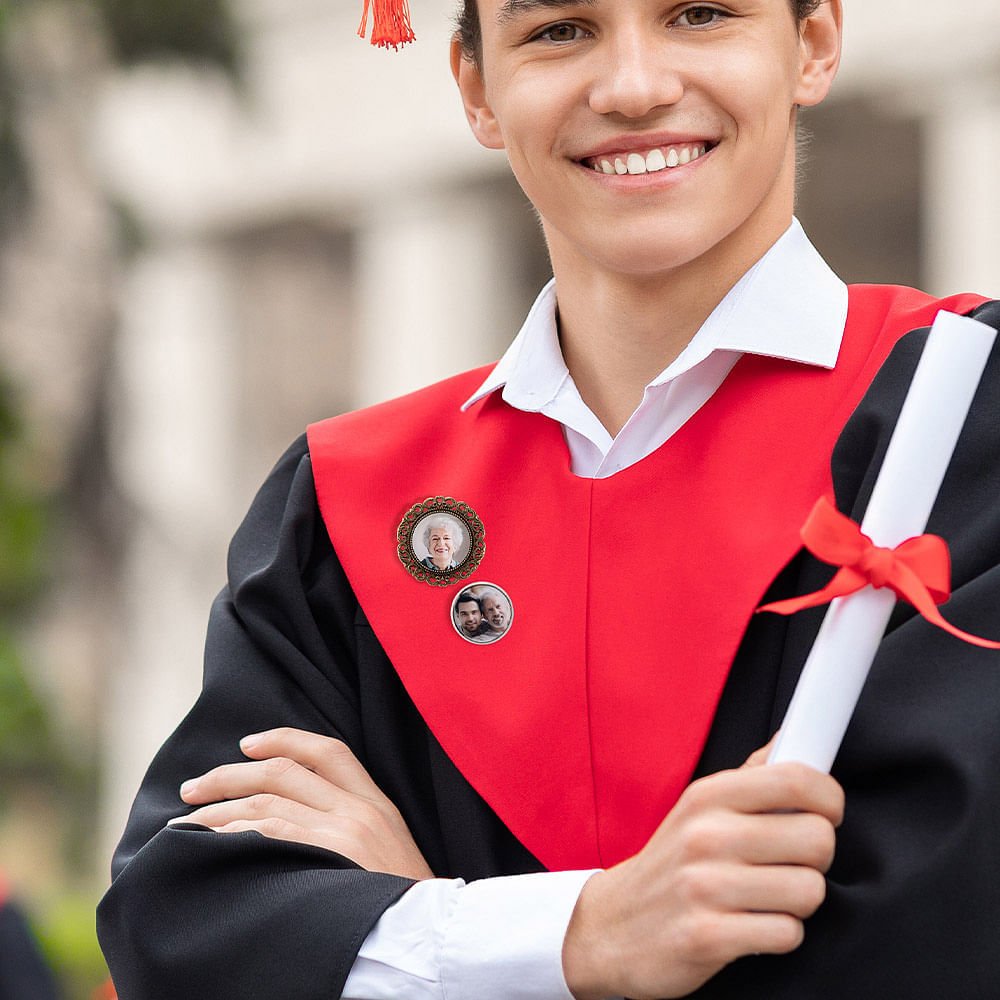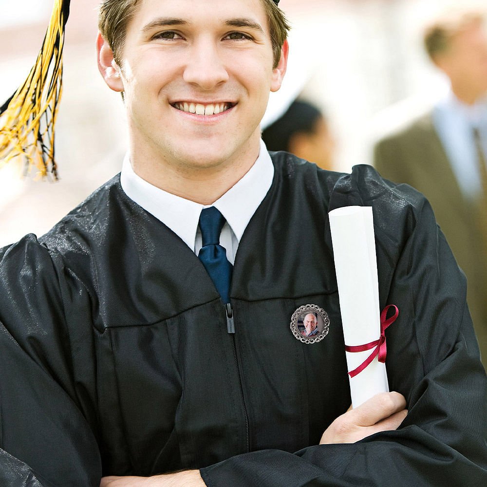 The photo pin makes an ideal graduation or wedding gift, allowing graduates and newlyweds to celebrate their achievements while remembering those important to them. This unique accessory embodies sentimentality, serving as a beautiful tribute on a day filled with joy and reflection.