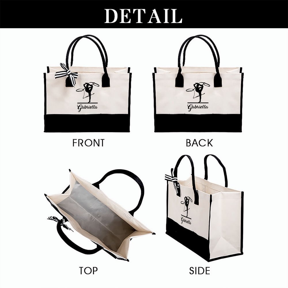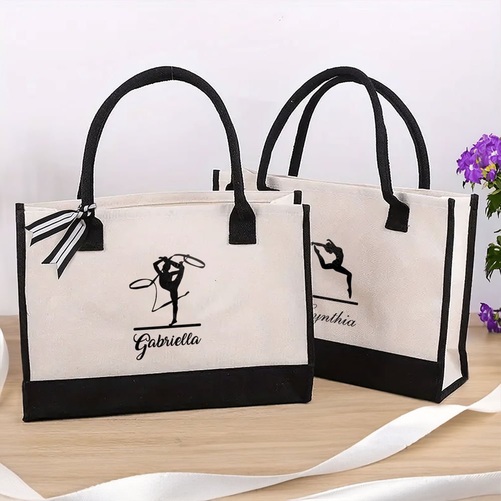 Whether it's a birthday celebration or a special occasion, this Personalized tote bag is a thoughtful gift for rhythmic gymnasts. It combines practicality, personalization, and style, ensuring it will be cherished and used as a reliable companion throughout their gymnastics journey.