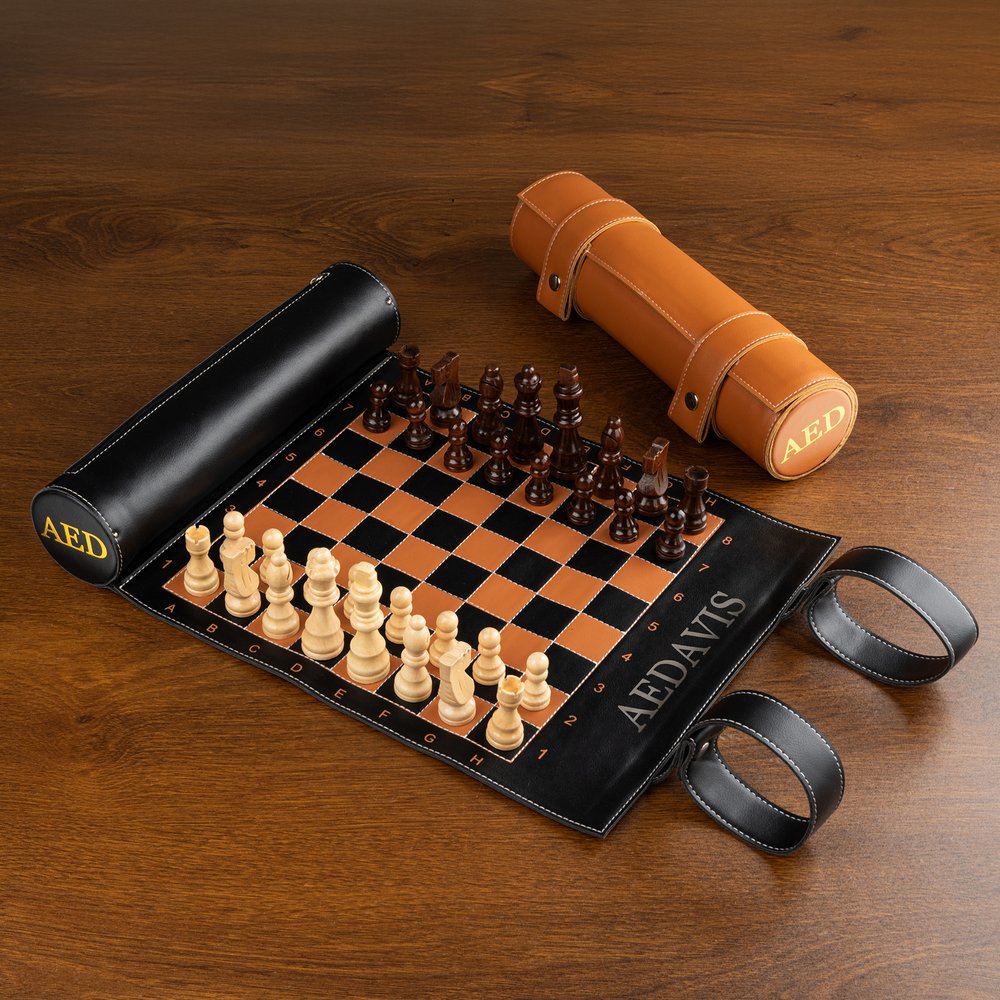 This roll-up chess set offers the option to personalize text or monograms, making it a unique and thoughtful gift. The sleek design includes a flexible chessboard that rolls up for easy portability. Whether for travel, casual play, or as a display piece, it’s designed to adapt to your lifestyle.