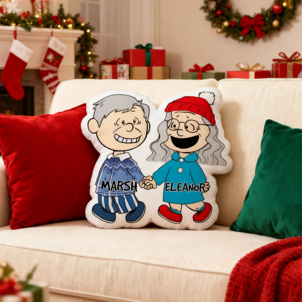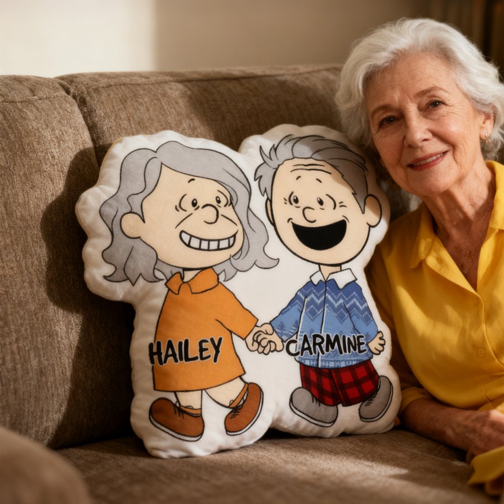 This pillow centres around customizable cartoon couple collages, crafted with die-cut shaping for a lively and playful silhouette. Paired with personalized name printing, it creates cartoon character designs that belong uniquely to the two of you—transforming sweet moments into a huggable, warm keepsake.