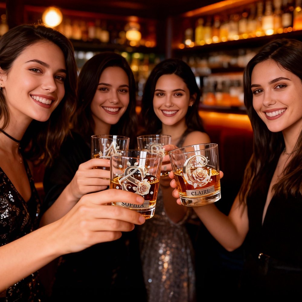 This whisky glass offers two elegant letter-themed designs: a classic retro gold pattern style and a romantic rose gold version adorned with delicate roses and diamond accents. Personalize it further with a custom name to create a truly one-of-a-kind piece that reflects both taste and sentiment.