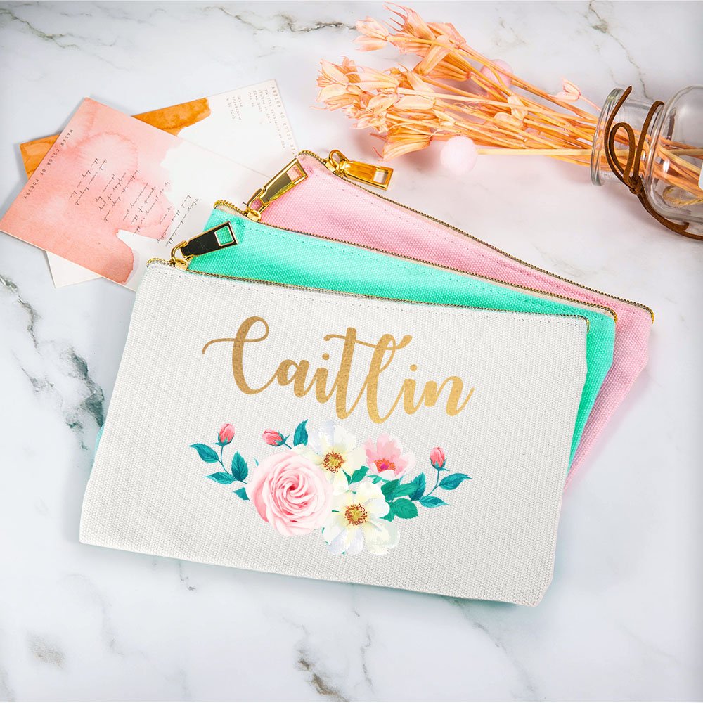 These makeup name bags are a gorgeous gift for girls and women on birthdays, weddings, Valentine's Day, Mother's Day, Christmas, Thanksgiving, adorable as teacher's gifts, graduation gifts.