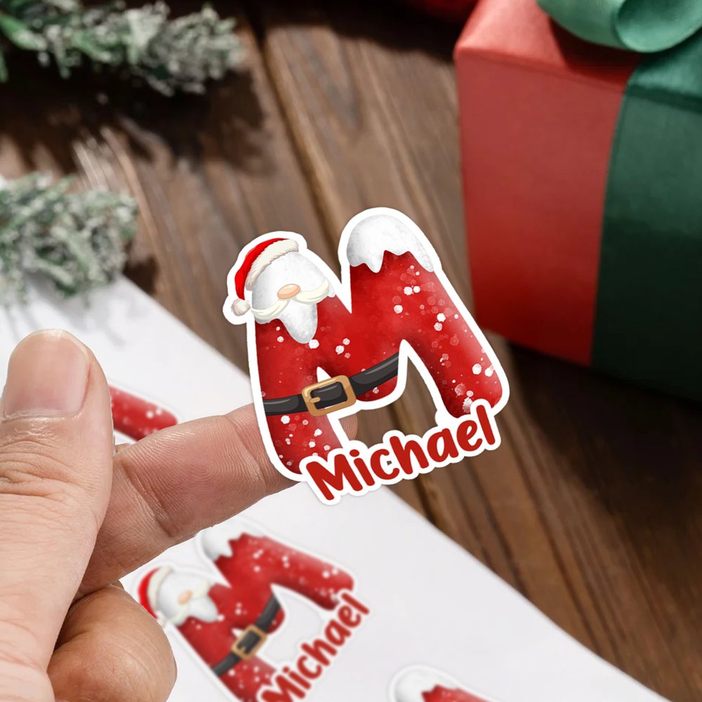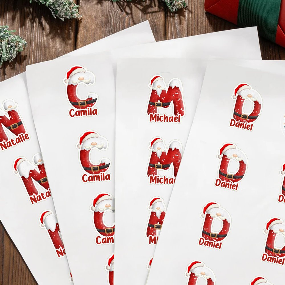 Christmas-themed stickers featuring adorable initials wearing Santa hats and embellished with snowflakes. Personalize them with your name or initials for a festive and playful touch. The cheerful Santa design makes them perfect for enhancing holiday gifts.