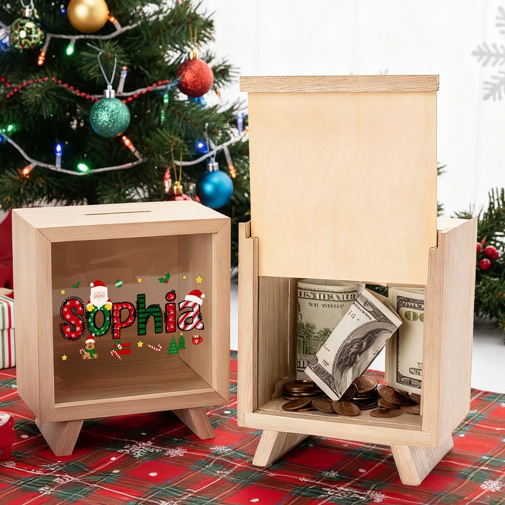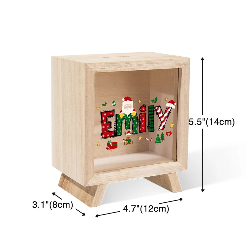 Personalized Santa Claus Elk Design Wooden Clear Piggy Bank Money Box with Name Home Decoration Christmas Gift for Kids