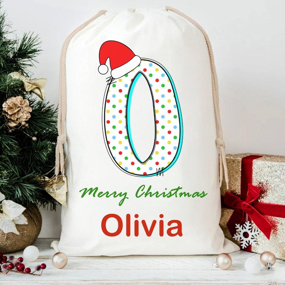 This exquisite gift bag features letters adorned with Santa hats, decorated with stars, polka dots, and ripples, along with the words "Merry Christmas," creating a festive atmosphere. Personalization with a name is available, giving each gift a unique meaning and making it even more precious.