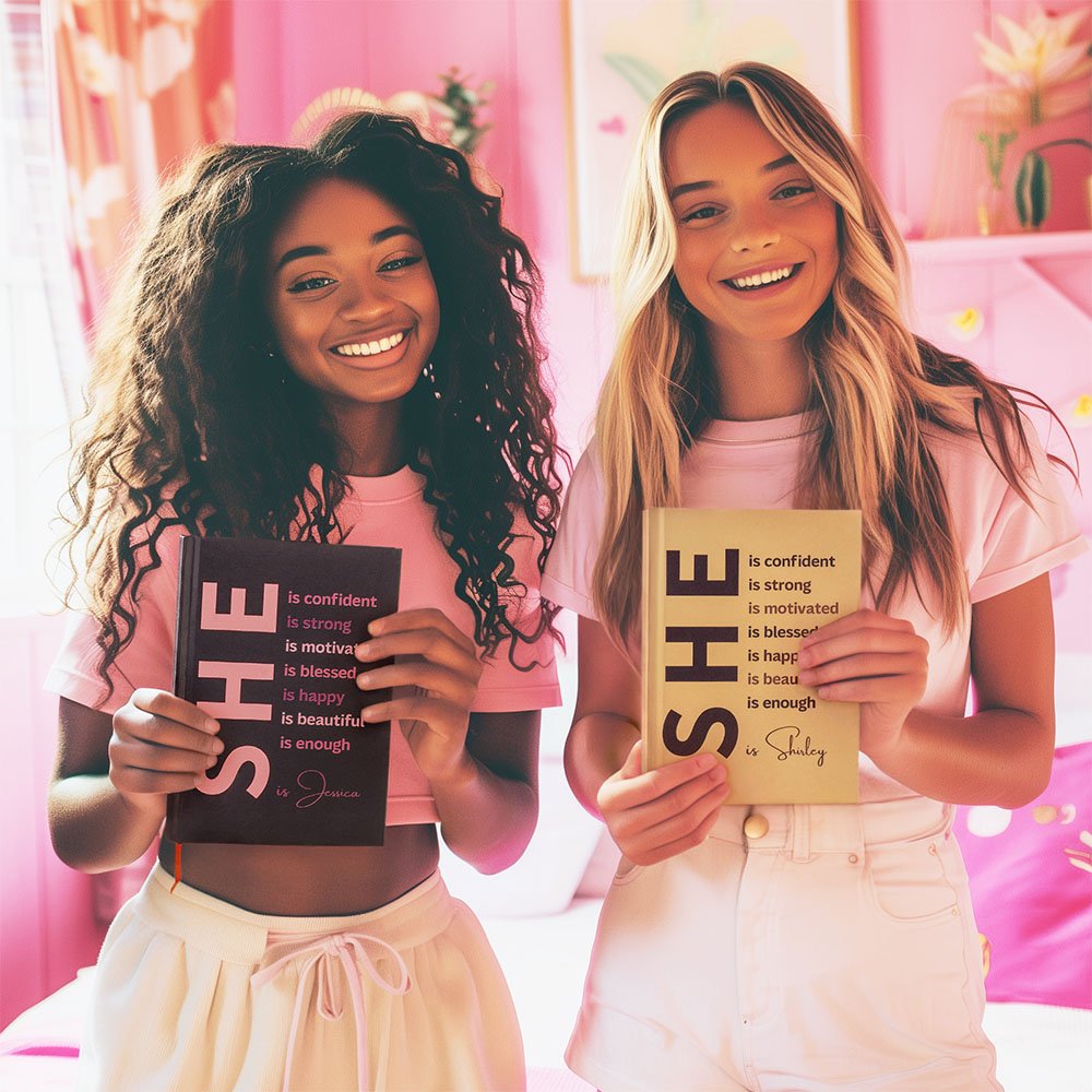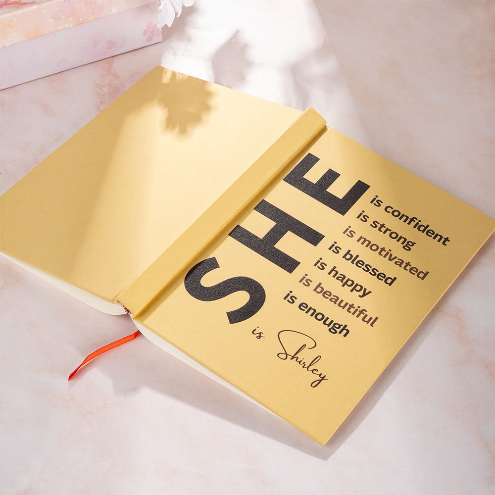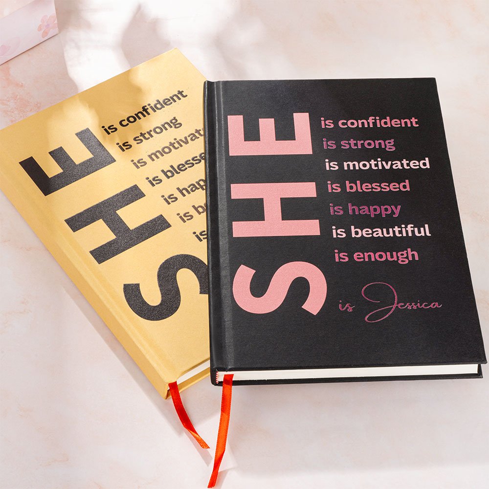 Our notebook features a bold, inspiring cover statement: "She is confident/strong/motivated/blessed/happy/beautiful/enough." These daily affirmations encourage self-love and empowerment, making it perfect for anyone seeking motivation. For a personal touch, we can add name to the cover, enhancing the sense of individual empowerment.