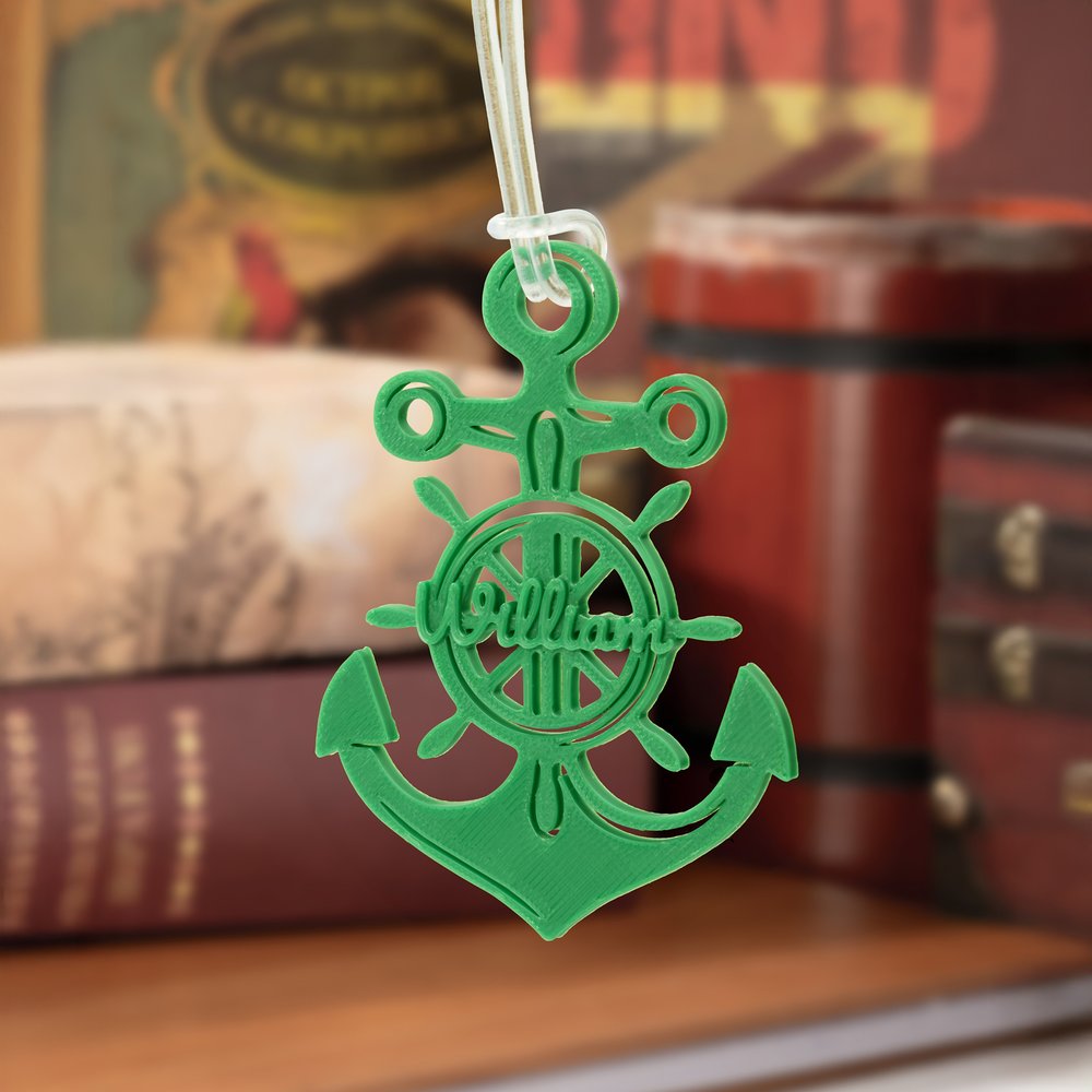 This ornament features a nautical-inspired design, adorned with exquisite ship wheel and boat anchor patterns. The overall design captures the essence of seafaring, showcasing a unique charm. A name can be customized at the centre, with a raised texture for an extra touch of refined elegance. We offer a variety of vibrant colour options, allowing your ornament to become a visual highlight and embody your exclusive style.