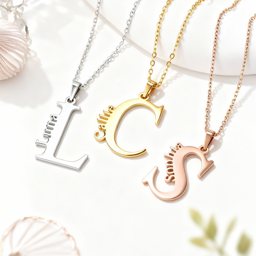 Our necklace adopts a minimalist aesthetic design, cleverly combining a large initial with the name, highlighting exquisite simplicity. Each letter is carefully cut, with clear outlines and smooth lines, perfectly showing the charm of exclusive customization.