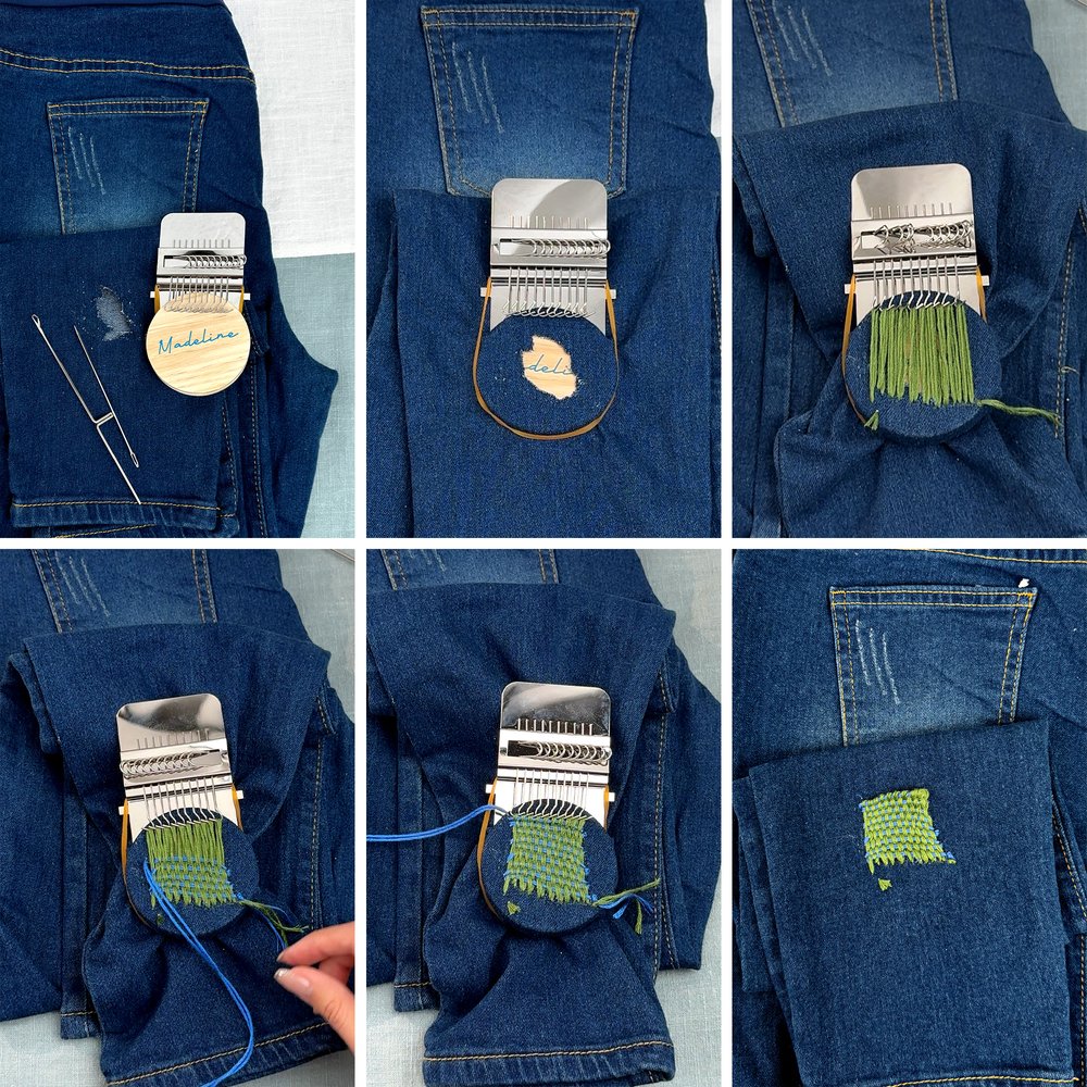 Ideal for multiple textile tasks: use it to patch holes in jeans, socks, and favorite garments, or create decorative woven patterns on items like Christmas stockings. The visible mending technique turns repairs into unique design features, while the included loom pick, needle, and rubber bands make it easy to start projects right away.