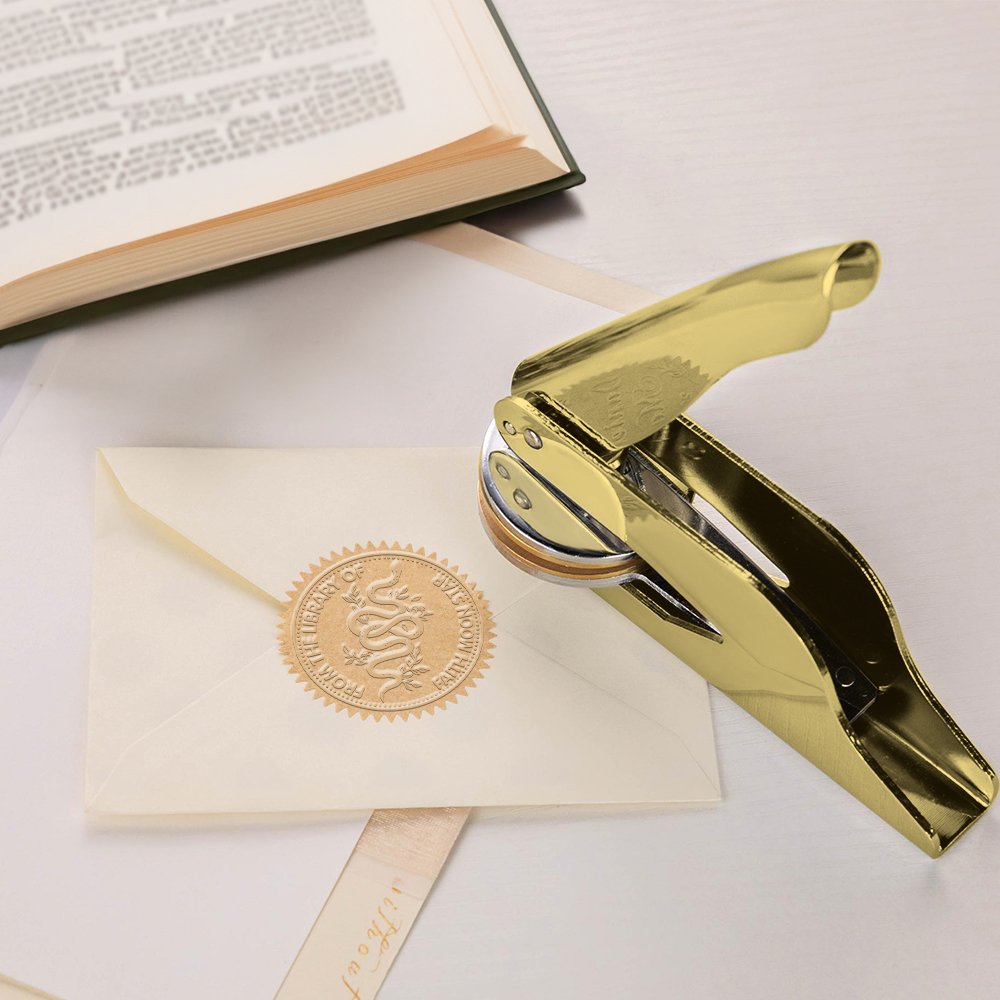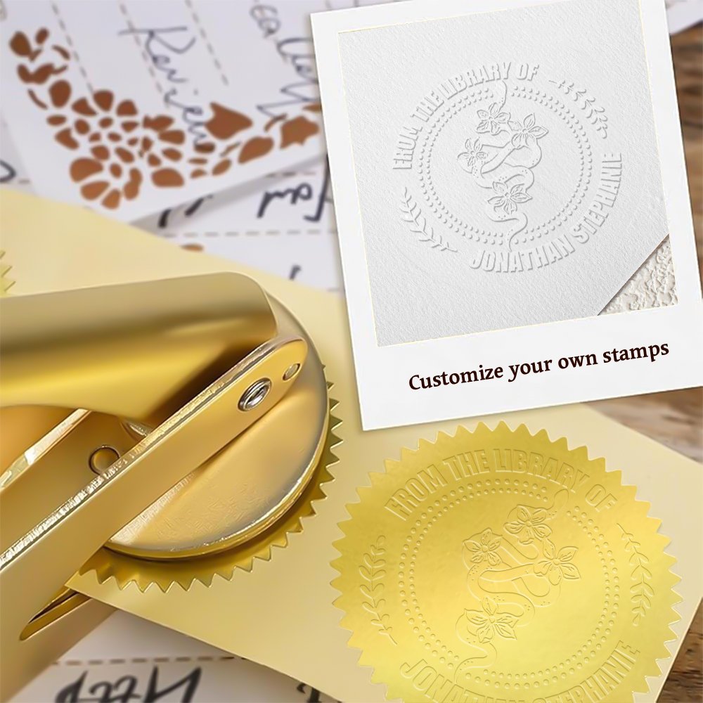 This embosser stamp is not just for books, but for any item you want to leave your mark on. Use it to emboss your name or logo on envelopes, journals, letters, certificates, and more. It's a versatile tool that adds a touch of elegance and professionalism to every piece of correspondence. From personal libraries to professional offices, this stamp is a must-have for any book lover or writer who values uniqueness and style.
