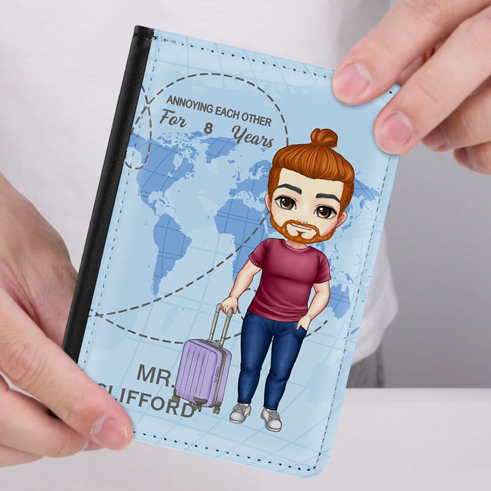 Our Personalized passport cover is a delightful gift for couples who love to explore the world together. The cover features a charming adventure-themed design that includes the phrase "Annoying each other for ... years" This Personalized touch adds a romantic and adventurous flair to their travel experiences.