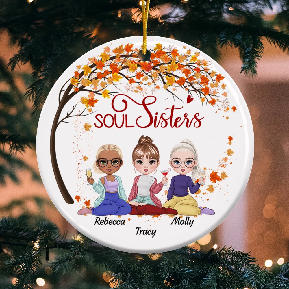 Designed for best friends, sisters, or female friends, this ornament is a beautiful way to show appreciation and love. The printed sentiment message "Soul Sisters" perfectly captures the bond you share, reminding your friends of your everlasting friendship every time they see it.