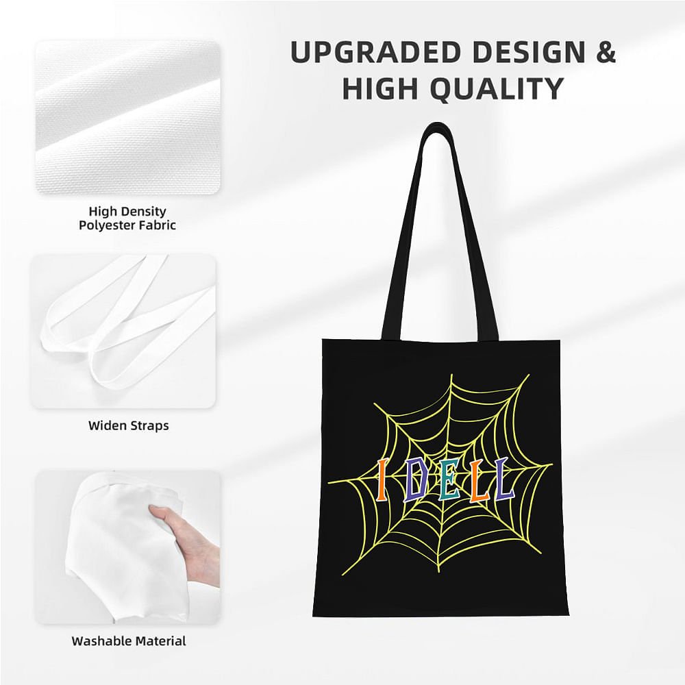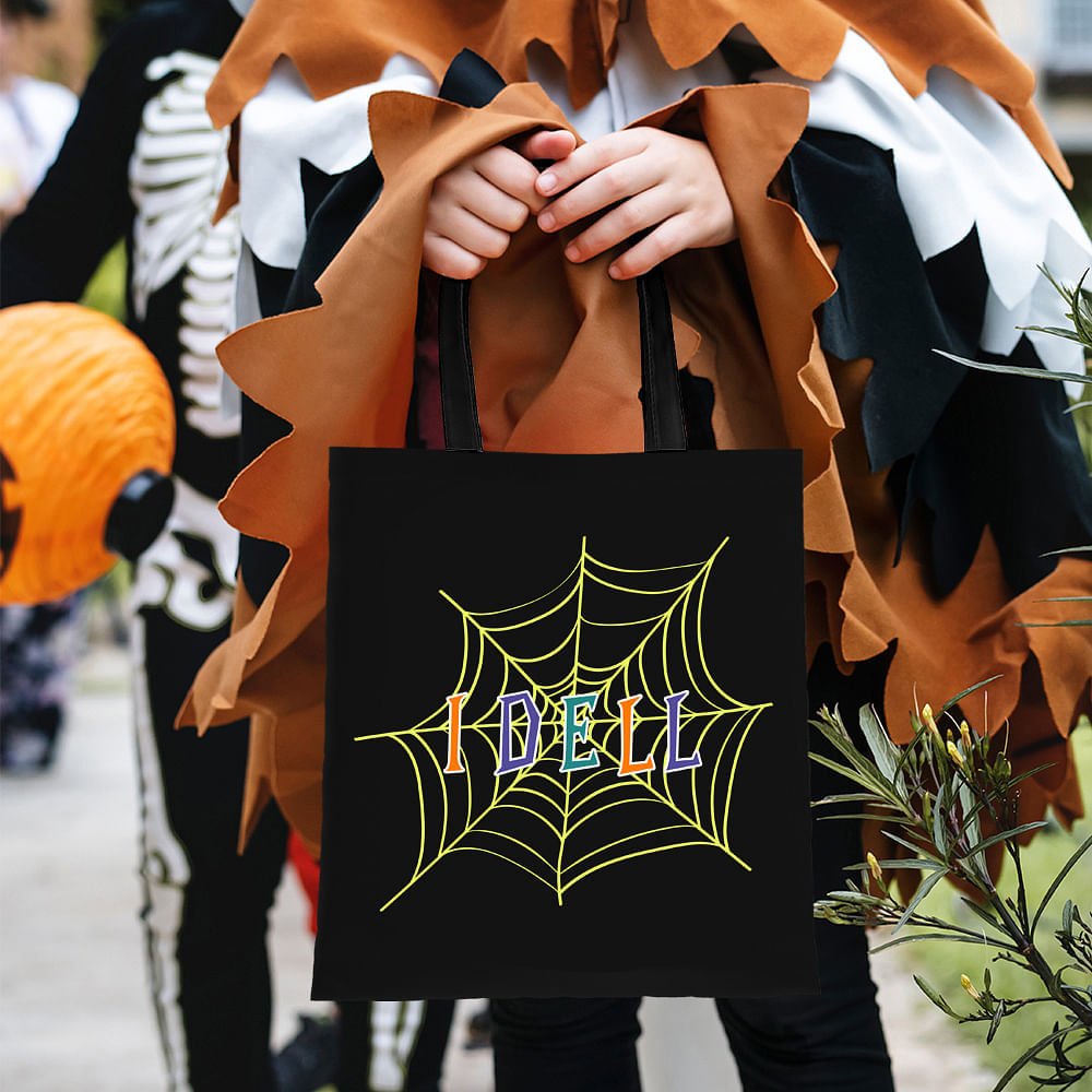 This tote bag features a classic and stylish spider web pattern. Two different colours of the pattern are paired with colourful fonts for you to choose from. You can also customize the name to make it more special. It can easily create a strong festive atmosphere when you go out on Halloween night.