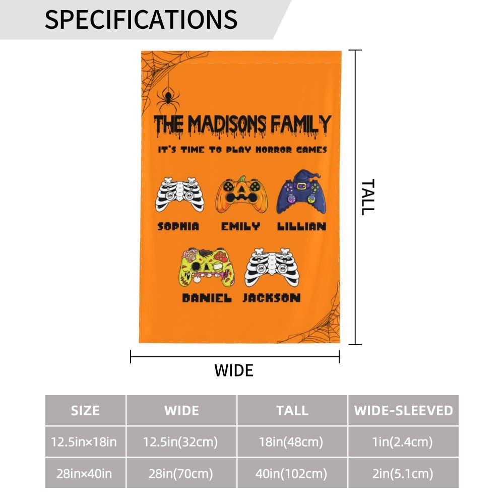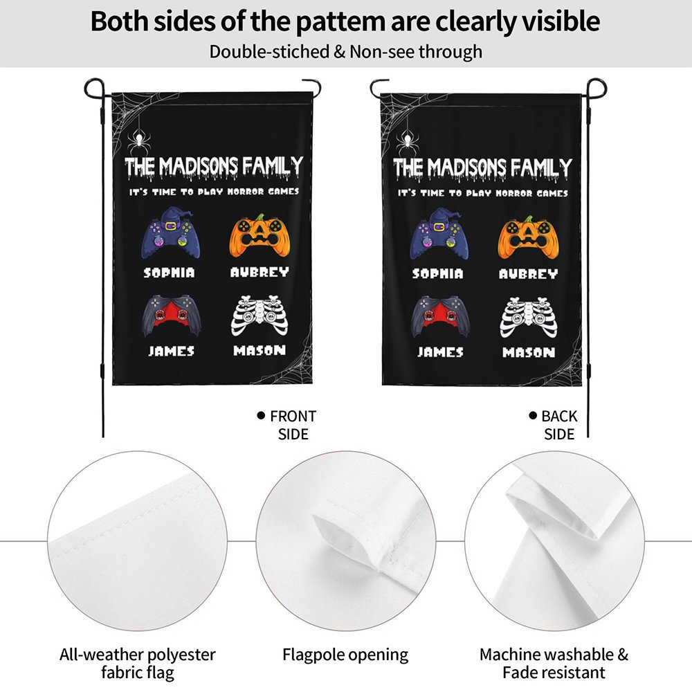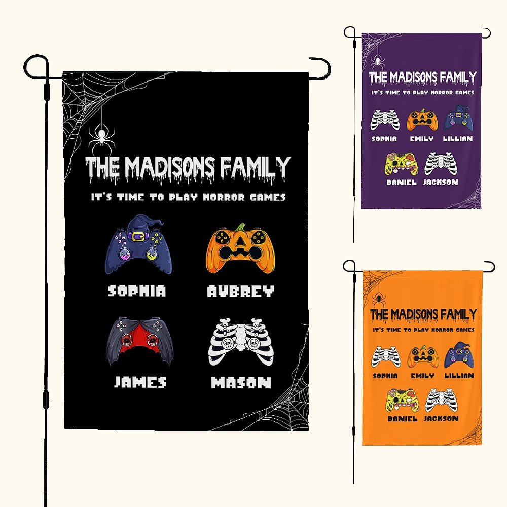 Designed for families who love games, this garden flag perfectly combines the horror atmosphere of Halloween with video game elements. Not only can you print skulls, zombies, vampires, jack-o'-lanterns, witches, and mummy-style game controllers according to your preferences, but you can also customize family titles, names, and slogans to create a unique decoration that belongs only to your home. Use it to decorate your garden or porch, create a strong festive atmosphere, and let guests and neighbors feel the joy and mystery of the festival.
