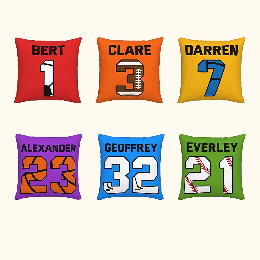 This is a throw pillow cover designed for ball game lovers or fans. There are six types of balls (basketball, soccer, rugby, baseball, ice hockey, volleyball) and seven pillow colours for you to choose from. Not only can customize 1-2 numbers but also can customize the name on the throw pillow cover, it is a quite memorable and suitable gift for a sports player.