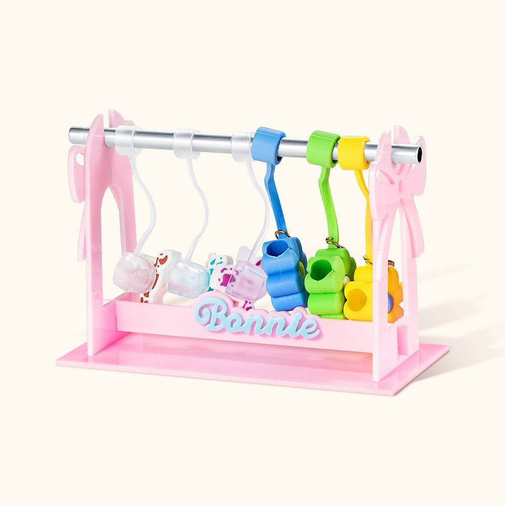 The design uses bow elements, which makes it look very cute. There are two colors to choose from, and you can also customize the name to create a unique straw hat rack.