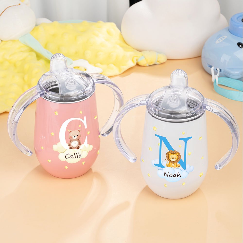 Combines unique design with a playful natural theme. The cup is decorated with beautiful stars, clouds, and forest animals, creating an imaginative visual experience for every child. You can customize your baby's name and initials; the exclusive design makes your child feel special and helps them identify personal items easily.