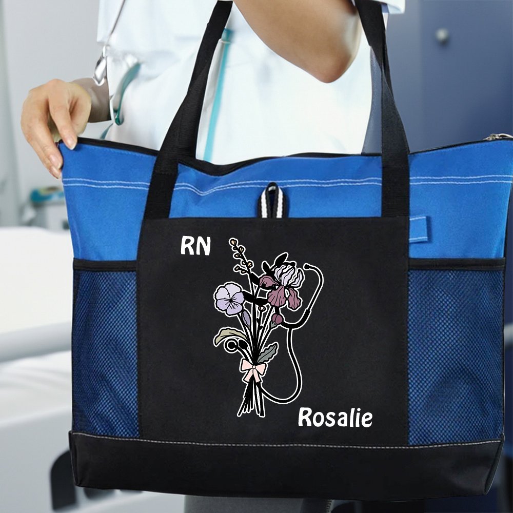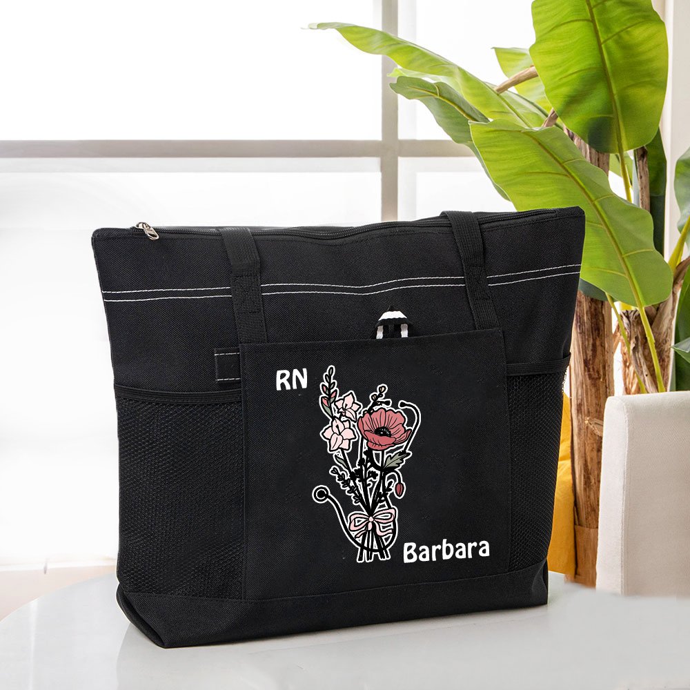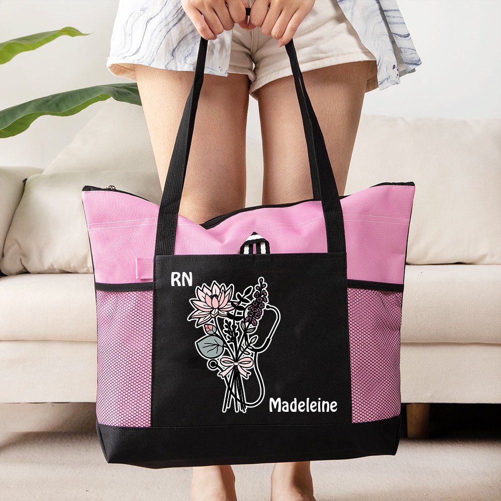 This nurse tote bag has a novel and unique design, cleverly combining three elements: birth flowers, bows, and stethoscopes, blending elegance with professionalism. You can print your name and title on the bag, which makes it a one-and-only article, and it can also prevent the bag from being misidentified by others.