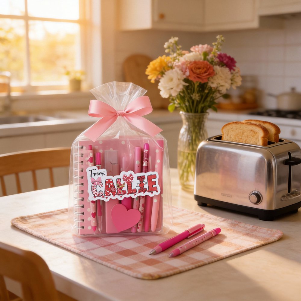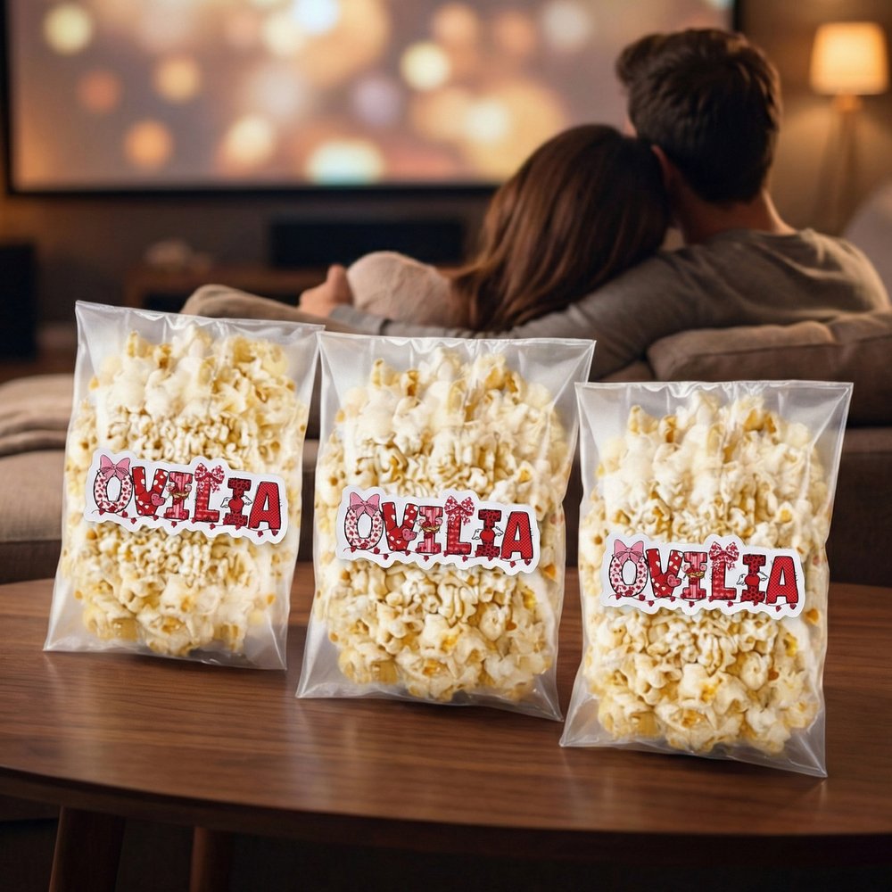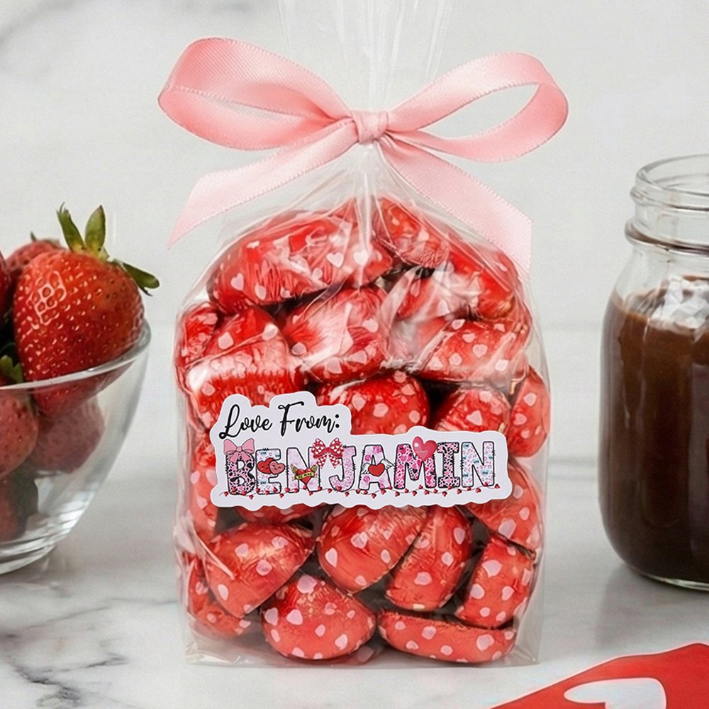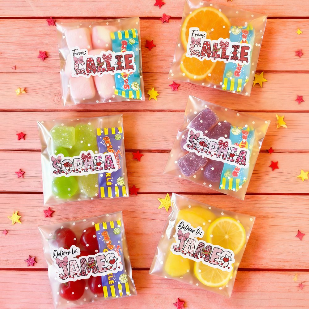 These stickers feature fun and diverse letter designs, including stripes, leopard print, and pink gradients, adorned with hearts and bows for an overall sweet and adorable style. You can customize the text above and below the stickers to instantly add a unique touch to your gift.