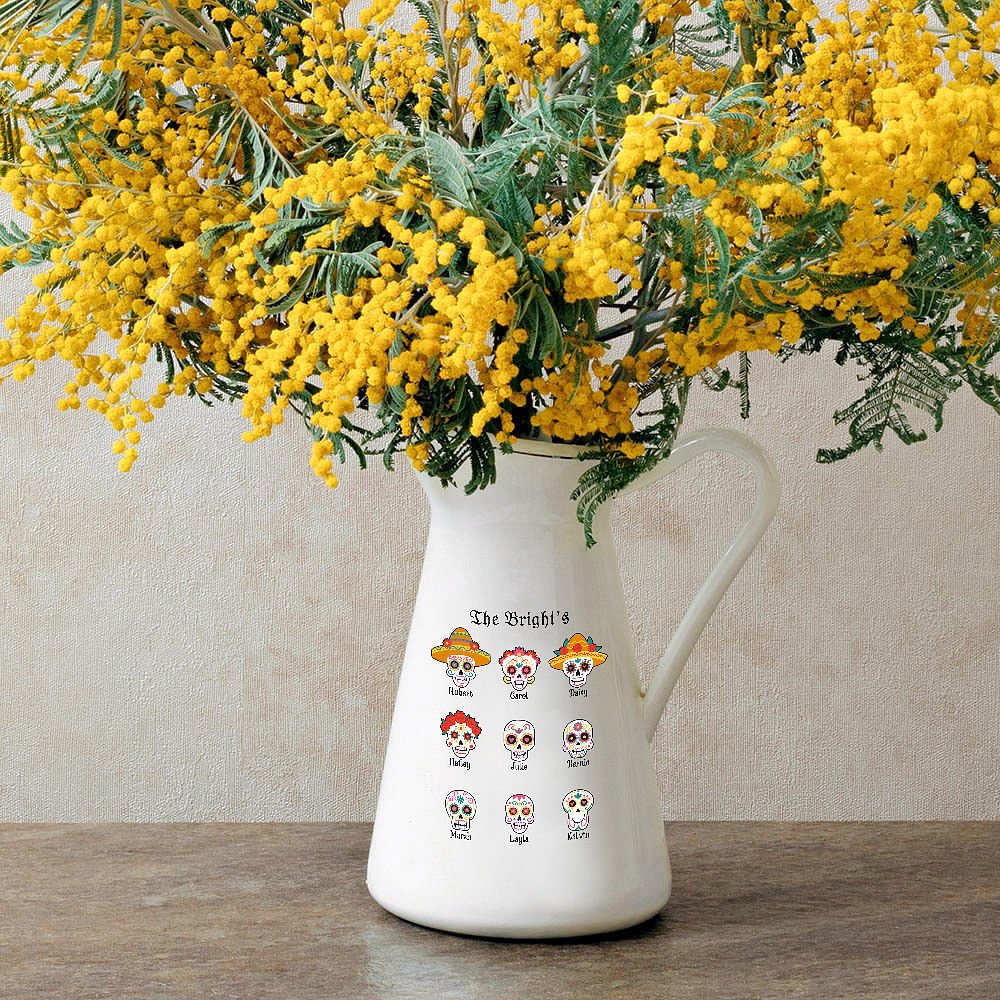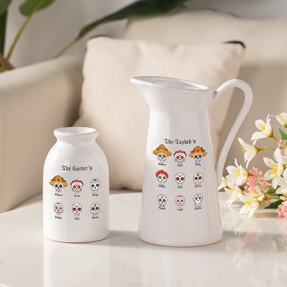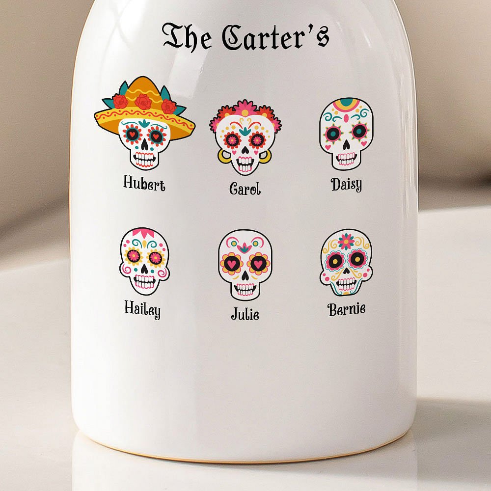 This Personalized sugar skull ceramic vase combines the traditional elements of the Day of the Dead with modern home aesthetics. You can choose 1-9 family members' names on the vase. Whenever there are flowers in it, it is a transmission of endless love for your family.