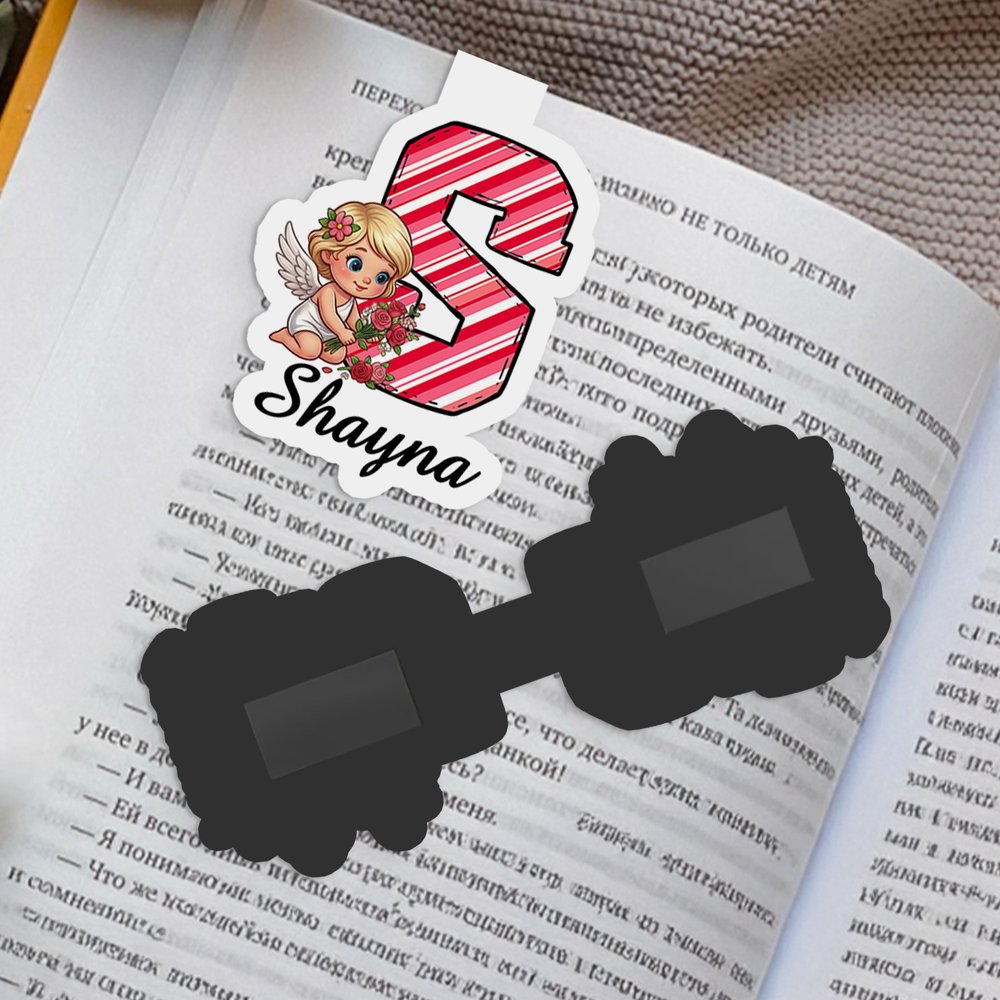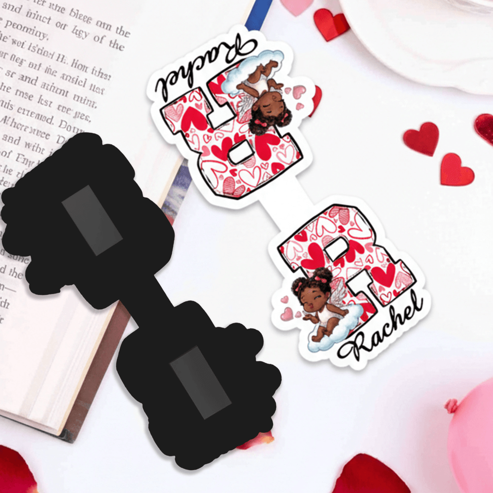This bookmark clip holder features a romantic Cupid angel design, adorned with classic Valentine's Day elements such as roses, hearts, and wings, creating a sweet and comforting aesthetic. It supports customization with your name and initial, cleverly blending personalization with romantic elements to make each bookmark clip unique and a special little moment of happiness for you.