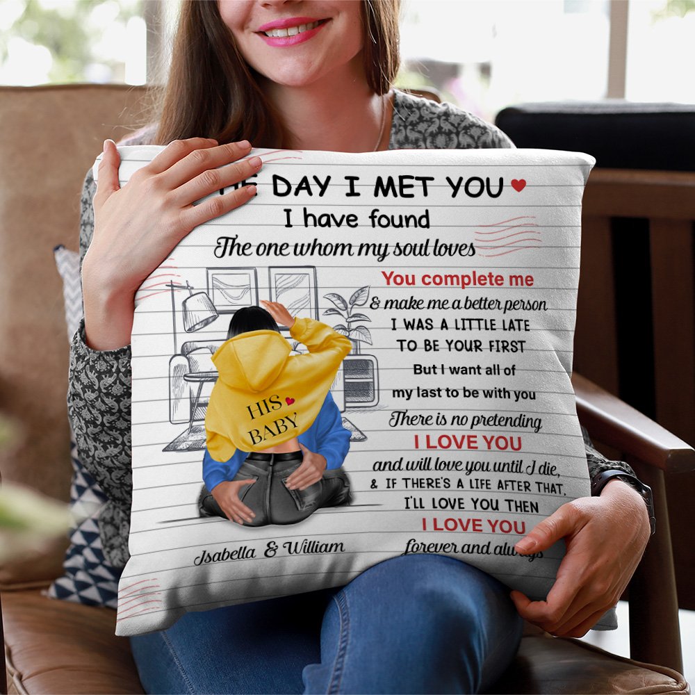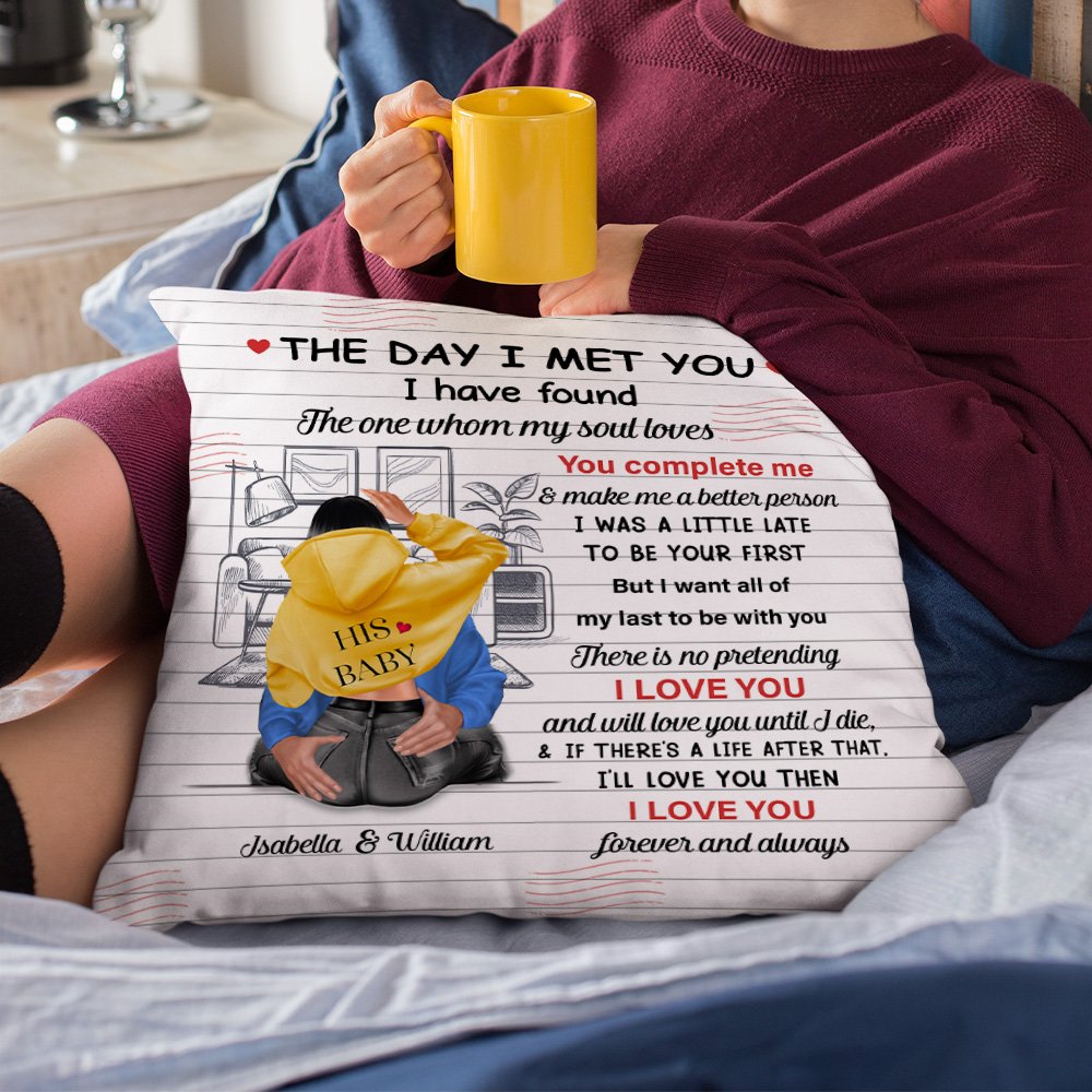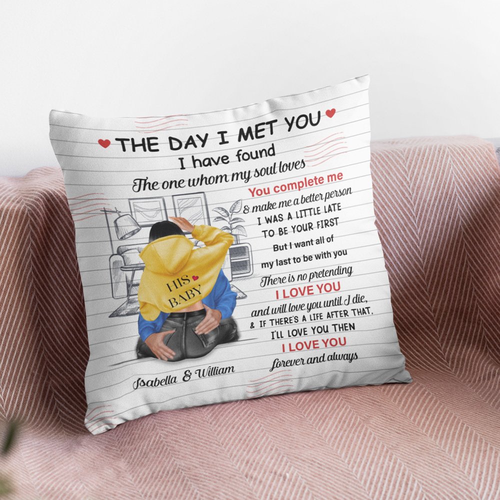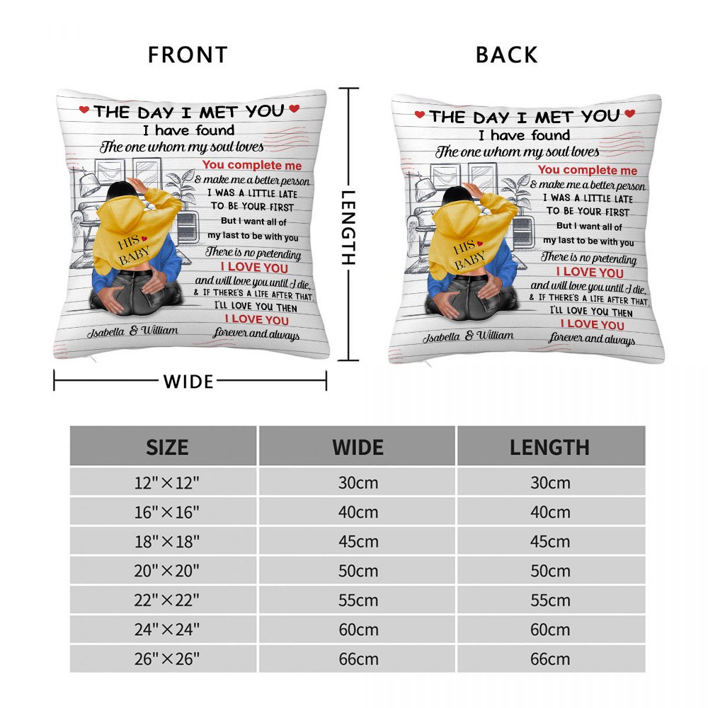 Our pillow cover features an embracing couple as the design element, with the text "The day I met you, I have found the one whom my soul loves" to make the overall design more emotional overtones. The lover's design gives it a more passionate and romantic meaning, making this pillow cover a true necessity for couples.